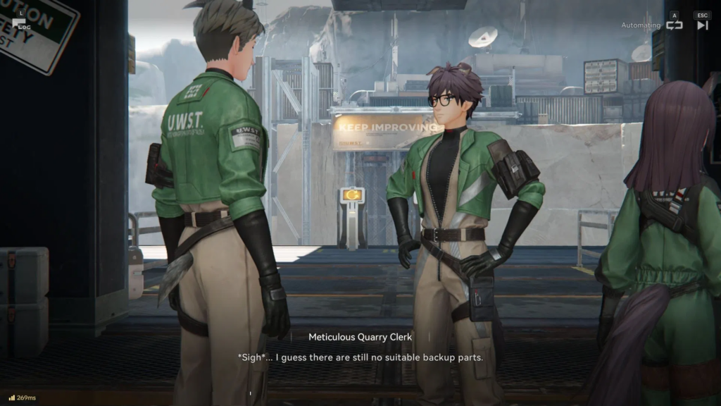 Сначала запрыгните вверх на контейнеры справа и подберите Аурелин, который опустится вниз. Взаимодействуйте с погрузчиком сбоку, чтобы поднять ящик.