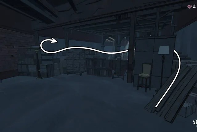 После того как разблокируете дверь, сможете войти в Подвал через Фундамент. Внутри вас ждет типичное подвальное помещение с коробками, картотеками и прочим хламом. Однако самое важное — подъемник, нагруженные коробками, и расположенная высоко кнопка. Чтобы дотянуться до кнопки, сначала нужно передвинуть подъемники так, чтобы образовать проход на противоположную сторону L-образного помещения. Здесь находятся дополнительные шкафы и коробки, а также лестница, окруженная коробками вдоль одной из стен, и пандус, ведущий наверх по ряду коробок у противоположной стены.