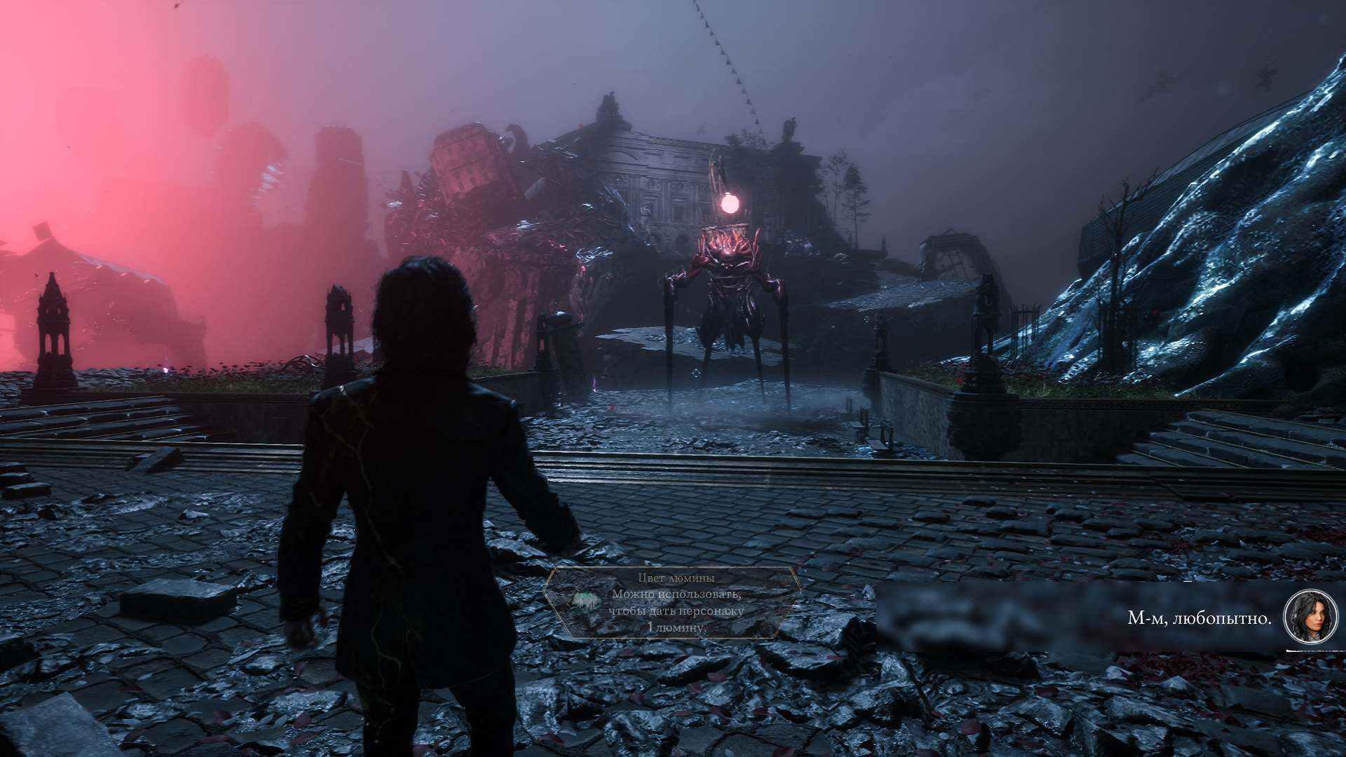 Чтобы пройти дальше, нужно победить опционального босса Хрома-ходулье. Он уязвим к огню. Когда он атакует в прыжке, нужно подпрыгнуть, контратаковать, а затем нажать на W для контр-градиента. К слову, с него можно забрать ногу, так что обязательно возьмите в отряд Моноко. За победу вы получите пиктос «Усиленный контрудар II» (контрудар наносит +75% урона), 5 цветов люмины и 2 сверкающих катализатора хромы.