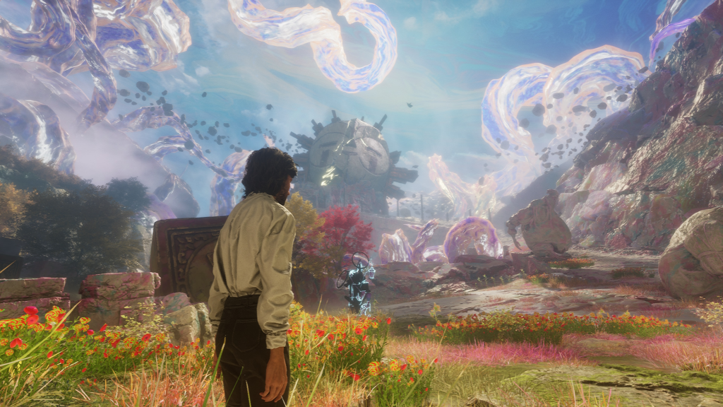 Победа над этой группой врагов принесет вам новые пиктосы — «Продленный слом» (слом длится на 1 ход дольше, но к цели нельзя применить слом повторно) и «Двойная треть» (каждый третий удар навыком наносит двойной урон). Следуйте вниз по склону, чтобы найти еще одного нового врага, Франктала, и патрулирующего Машиноступа.