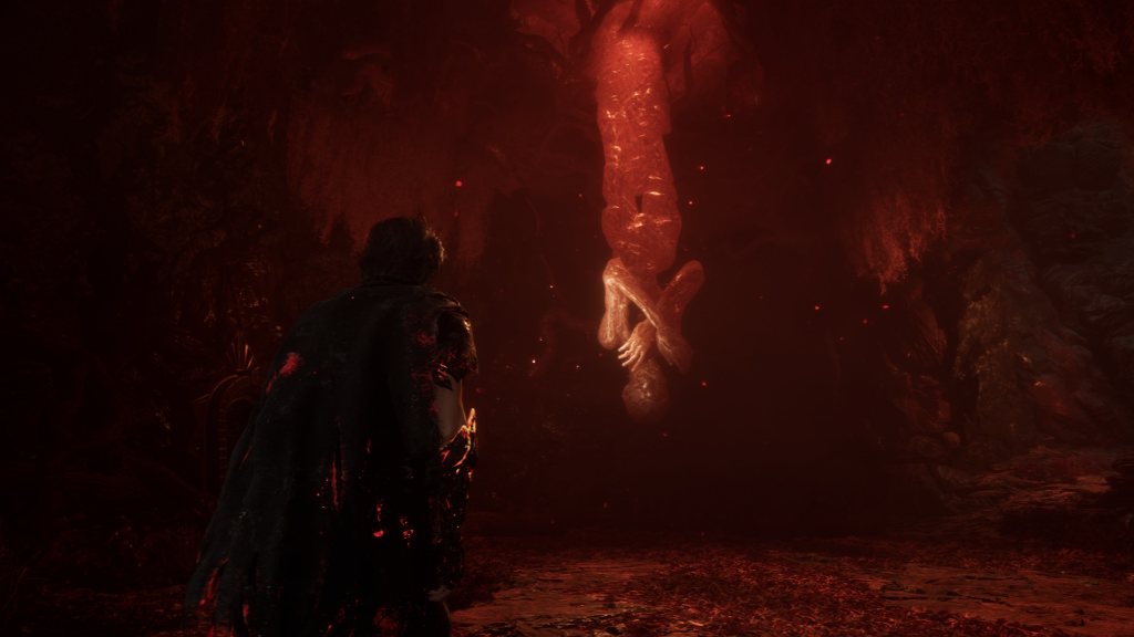 Пройдите к врагу впереди, заверните вправо и увидите веревку. Спуститесь по паре веревок вниз ущелья, убейте врага и войдите в пещеру. Пообщайтесь с подвешенной головой вниз Источительницей. Она будет молчать. Слева есть дверь особняка. Войдите внутрь, возьмите музыкальную запись «Алисия».