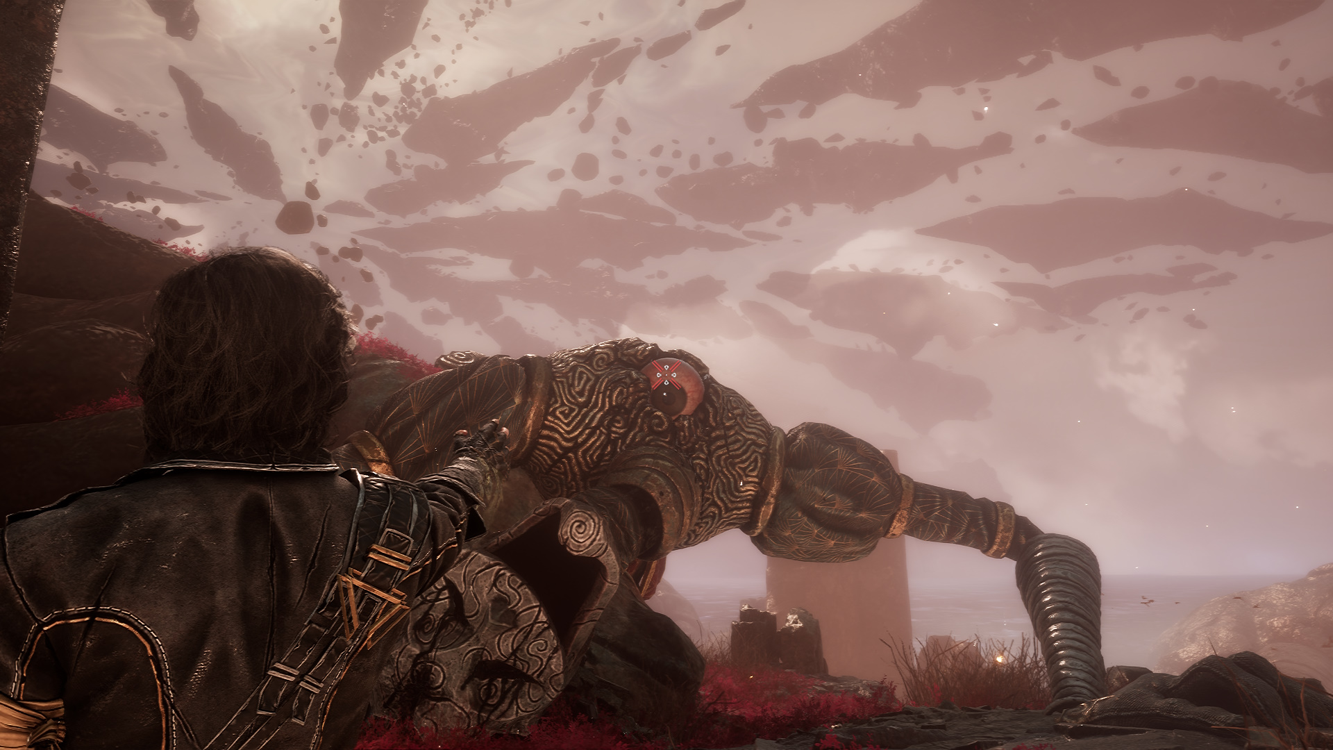 Когда выстрелите в 3 глаза, появится мост, и вы сможете пройти к боссу Хрома-щитороту. За победу получите улучшенное оружие «Ликум» и прочее.