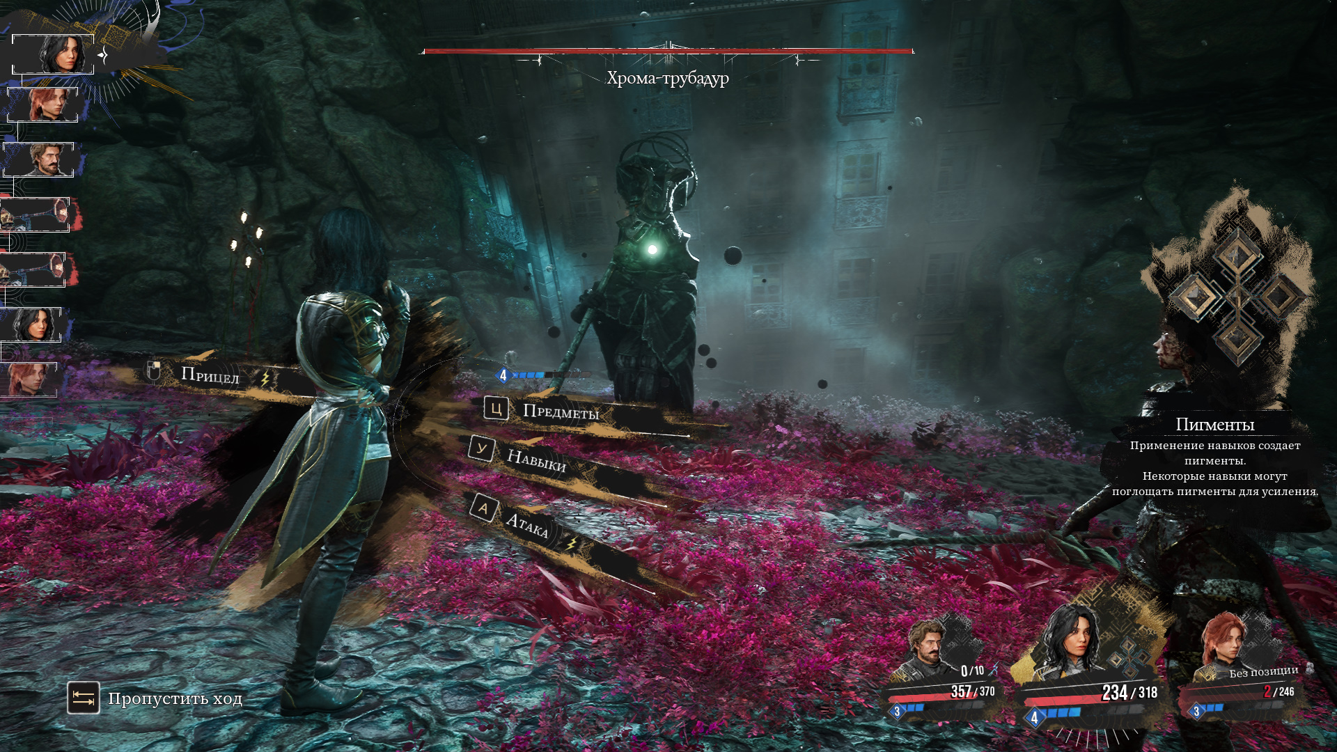 Обязательно исследуйте зону за боссом — там вы найдете новый пиктос «Бодрящий слом» (+3 ОД после слома противника). Используйте крюк, чтобы покинуть зону и вернитесь к флагу «Улицы Люмьера». Если смотреть на него, вам нужно повернуться влево и обнаружить узкий проход с указательным знаком «Порт Лемьера». Идите туда и активируйте флаг «Цветущий луг». Далее вас ждет сюжетный босс.