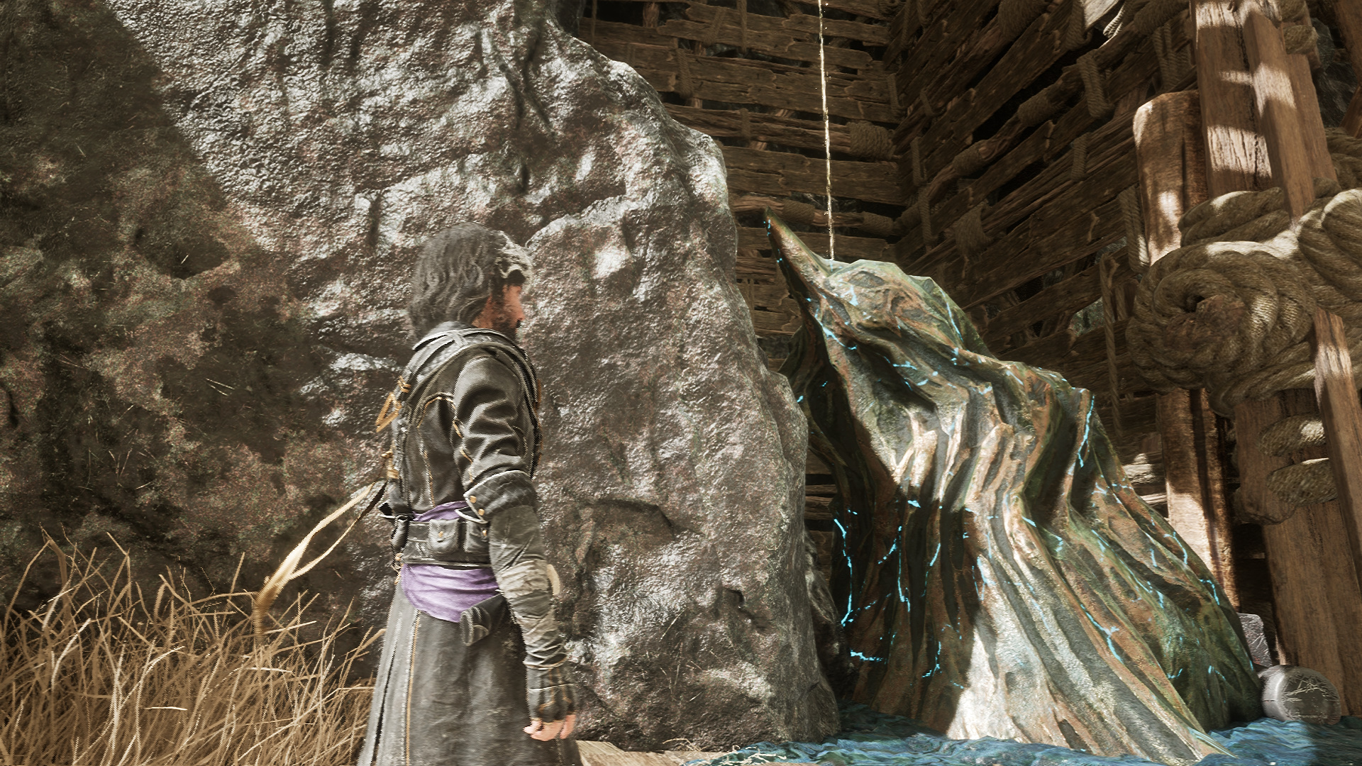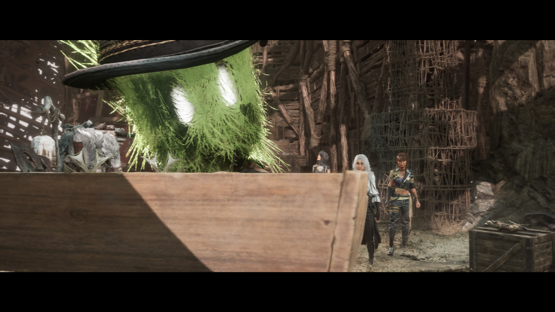 Вернитесь к флагу, после подъема увидите цвет люмины. Справа от флага есть веревка, уходящая вниз, к Миму Выси. За победу над ним вы получите прическу и наряд «Багет» для Маэль.