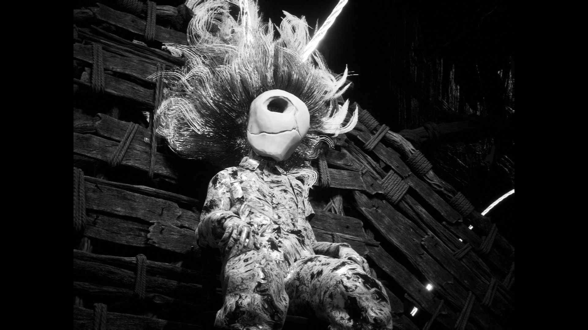 Продолжите движение вверх по склону, по единственному оставшемуся пути. Убейте пару врагов, встаньте на склон и притянитесь крюком. Поднимитесь выше и найдите странное существо, сидящее за столом. Поднявшись выше, возьмите хрому и воспользуйтесь третьим воздушным шаром. Активируйте флаг.