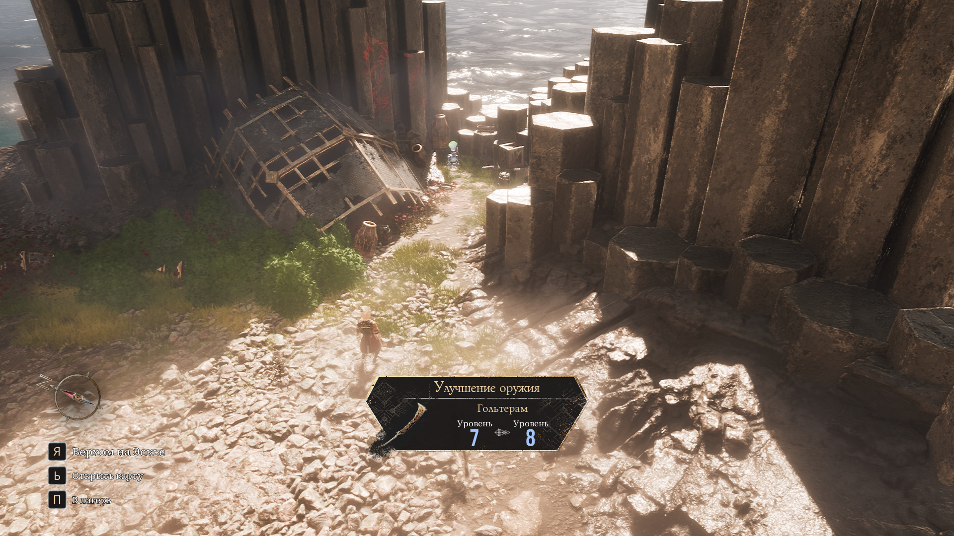 Чуть дальше есть Красочница. Первый замок ищите позади нее среди скал, второй — на возвышенности справа, вдалеке, а за третьим поднимитесь по веревке справа. Вы получите новое оружие Гюстава «Деларам».