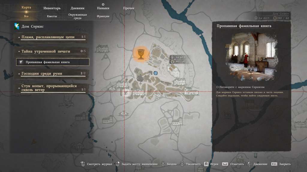 Квестовая цепочка от дома Серкис появится примерно в начале пятой главы.