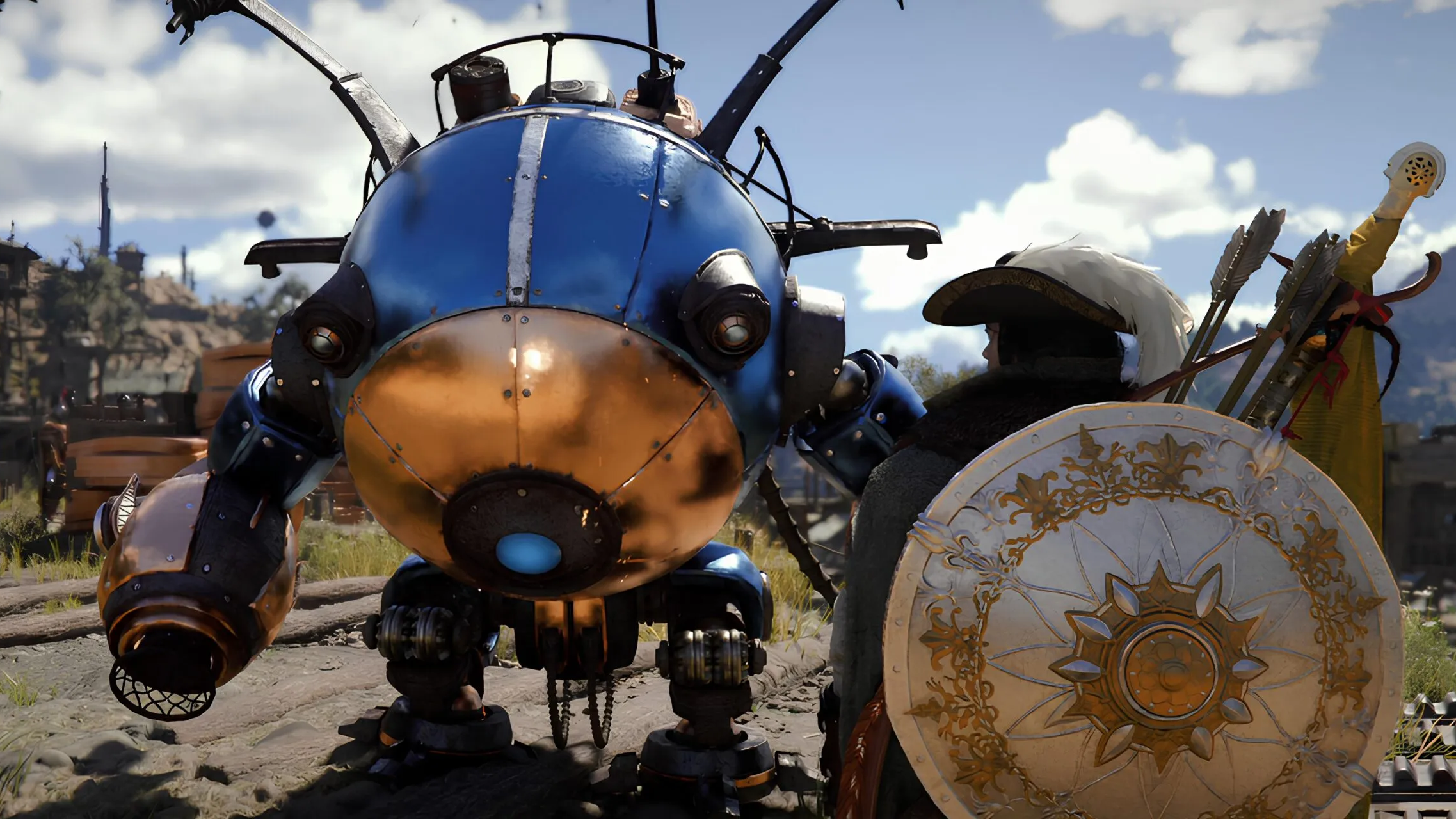 Недалеко от места, где закончился предыдущий квест, поднимитесь на вершину локации и поговорите с гномом, стоящим перед синим роботом.