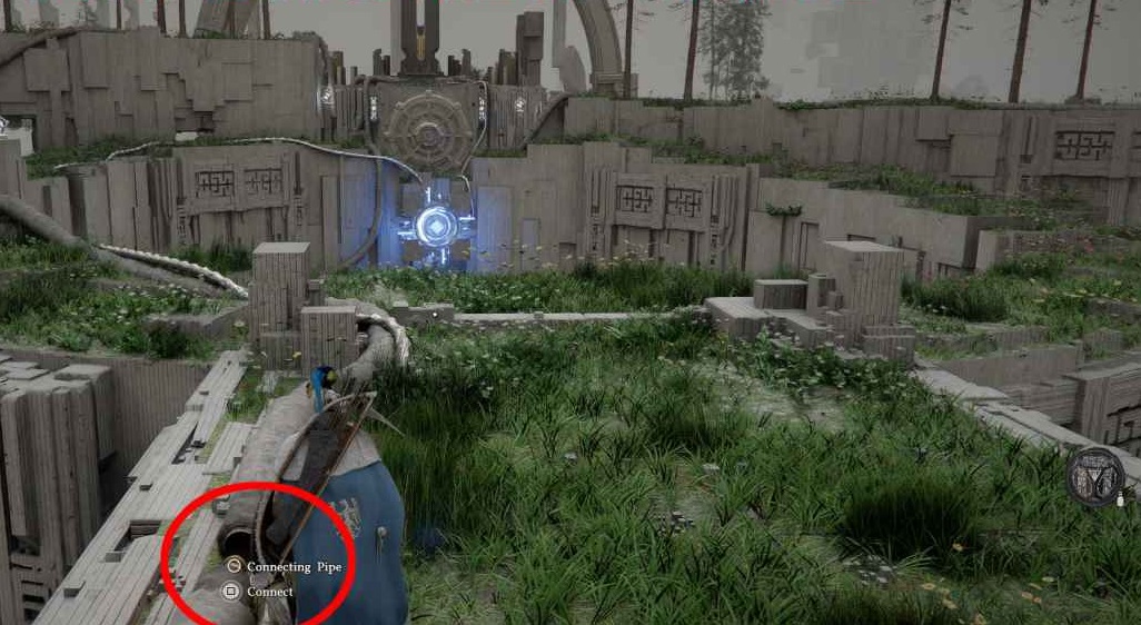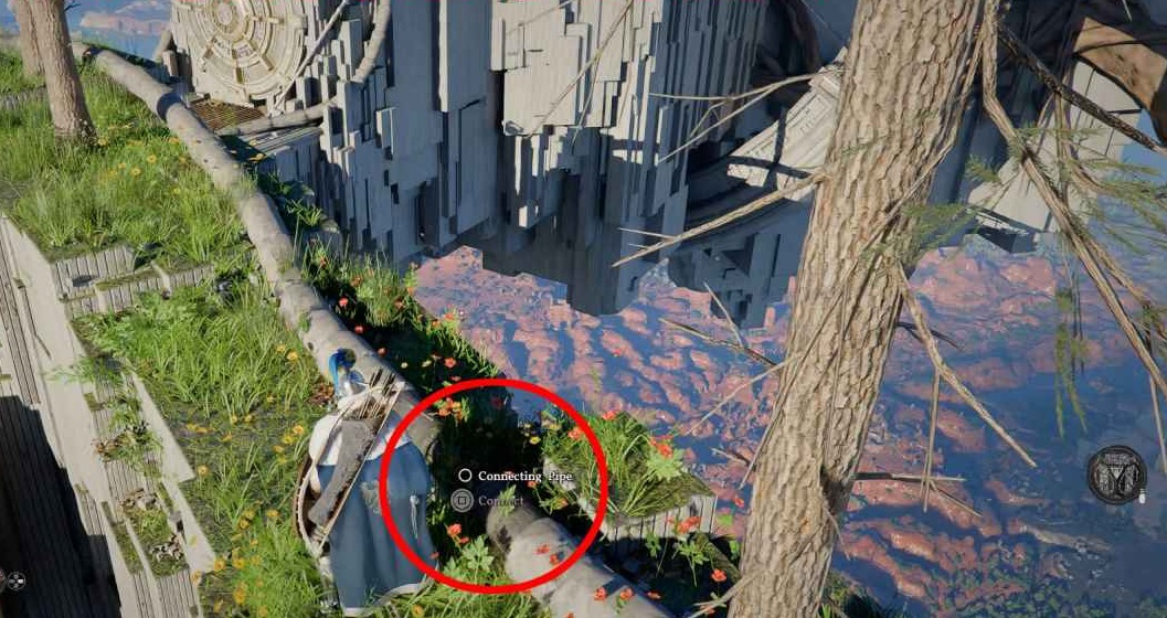 Попав на другую сторону, вы должны будете починить два оборванных силовых кабеля. Удерживайте CTRL + ЛКМ (Отражение Света), чтобы найти и последовать вдоль кабелей с желтым свечением. Это оборванные провода. Следуйте за ними, пока не найдете оборванный участок, и подключите путем обычного взаимодействия.