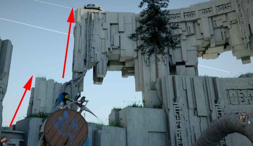 Вы легко можете добраться до вершины, выполнив тройной Удар Пальмары в прыжке. К этому моменту данное умение уже должно быть у вас прокачано!