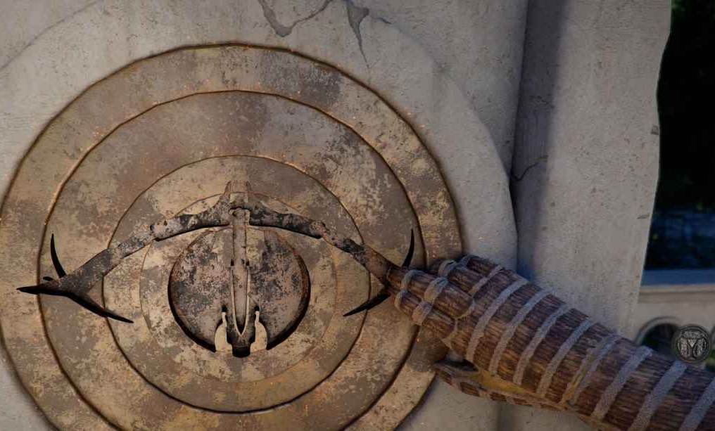 Столп поднимется из земли, вы увидите головоломку. Нужно вращать диски так, чтобы получился символ «глаза». Жмите на указанные клавиши, чтобы выбрать, какое кольцо вращать, и так далее. Инструкция показана в правом нижнем углу экрана.