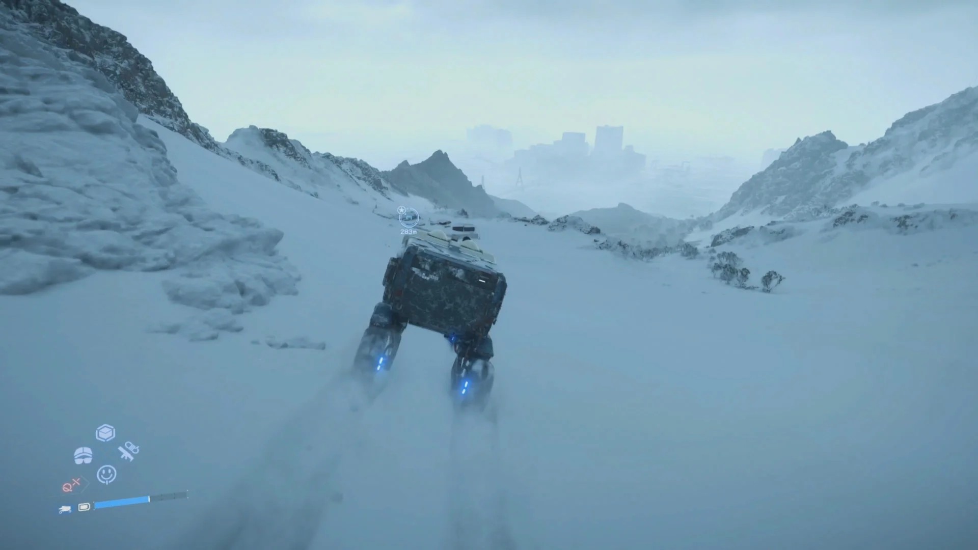Южный маршрут, в свою очередь, позволяет обойти почти все снежные участки, пока вы не окажетесь к югу от базы. После этого можно постепенно двигаться к пункту назначения на севере. Главное в этом задании — не торопиться. Спешка приведет к ошибкам, авариям и повреждению груза. Кроме того, ускорение быстро посадит батарею внедорожника, так что рекомендую добавить к нему дополнительные аккумуляторы.