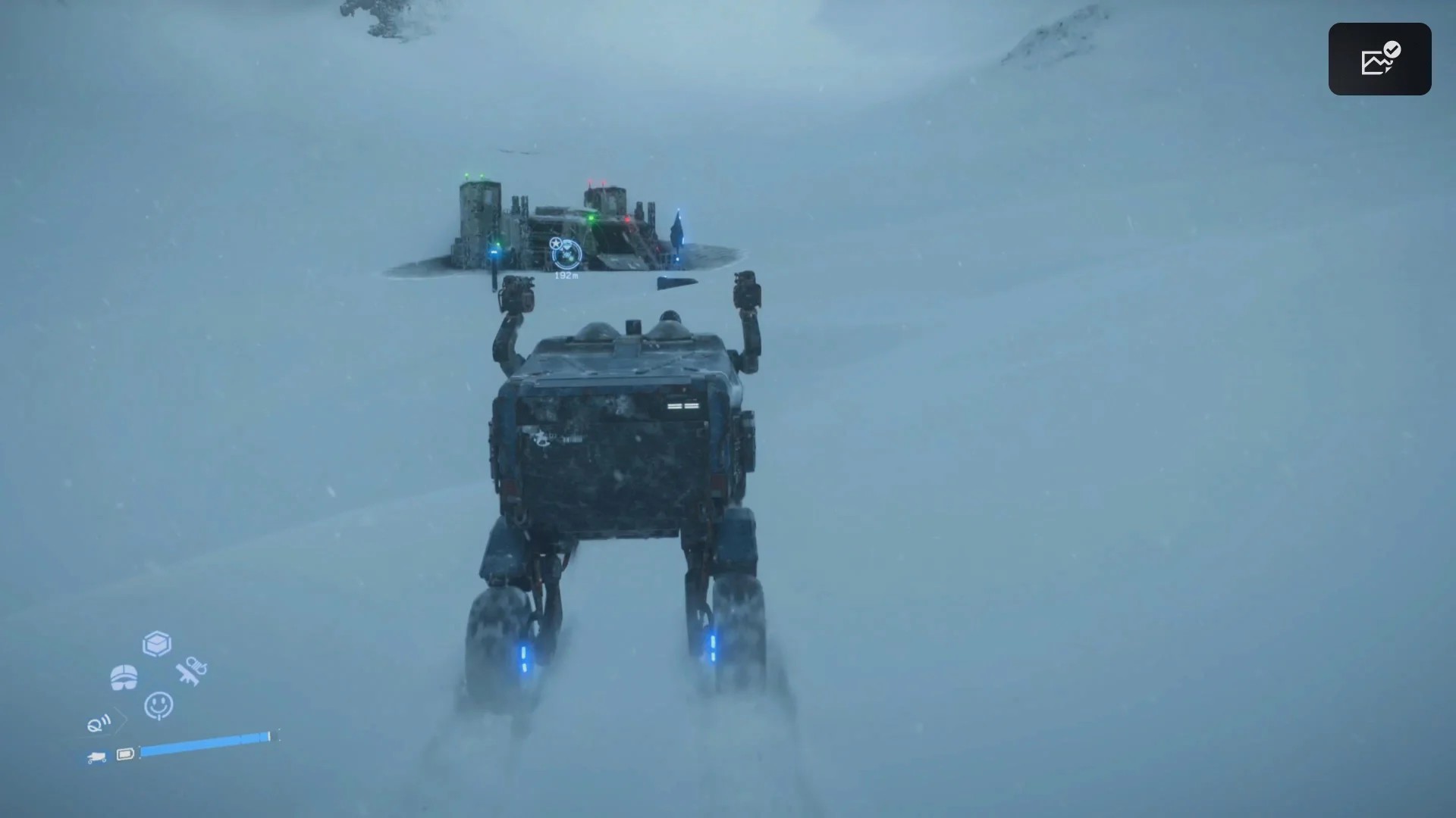 Двигайтесь медленно и осторожно, не используйте ускорение, иначе ваша батарея быстро сядет. Примерно через 2 километра вы доберетесь до строящейся базы DHV «Магеллан».