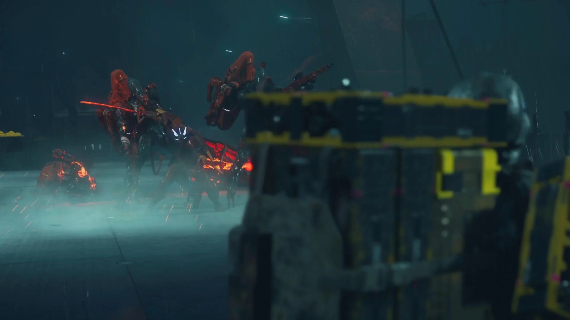 В ходе поездки запустится кат-сцена: мост начнет рушиться, и на помощь придет красный самурай. Сэм сойдет с трикрейсера, и вы сразу вступите в финальную битву с гигантским призрачным мехом. Его слабые места все те же — суставы на щупальцах, а также глаз — выстрелы по нему наносят наибольший урон.