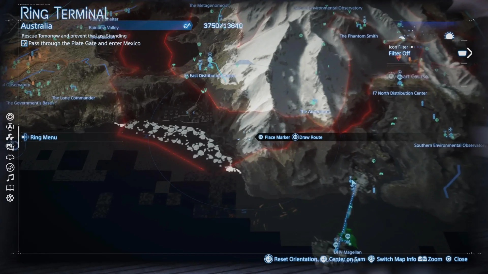 Продолжите движение на запад, избегая скал и обрывов, пока не доберетесь до разлома Австралии. Используйте его, чтобы попасть в Мексику, и продолжите путь на северо-восток. В этот раз Мексика выглядит странно, так что постоянно используйте L1, чтобы сканировать окружение. Как и раньше, используйте генераторы для подзарядки транспорта. Когда доберетесь до F1 (куда изначально и ведет метка), начнется битва с боссом.