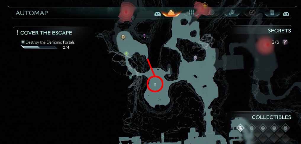 После закрытия третьего демонического портала, прежде чем идти к четвертому через прыжковую платформу слева, поверните направо и пройдите за угол. Найдите фиолетовый ключ. Вернитесь в зону, где был первый портал, и откройте фиолетовым ключом ворота. За ними вас ждет секрет и печать жизни.