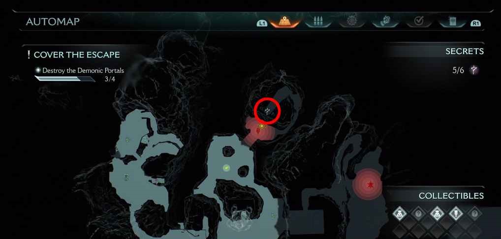 После закрытия демонического портала в зоне за Секретом №5 пройдите за него и сверните вправо. Взберитесь по скалам и доберитесь до самой вершины области — здесь лежит первая запись Кодекса.