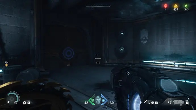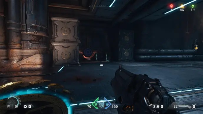 После обучения использованию щит-пилы, примените оружие, чтобы пройти через ближайшую дверь. В помещении слева примените удар щитом, чтобы попасть в секретную комнату с культистами. Здесь вы найдёте первый секрет уровня и дополнительную жизнь.