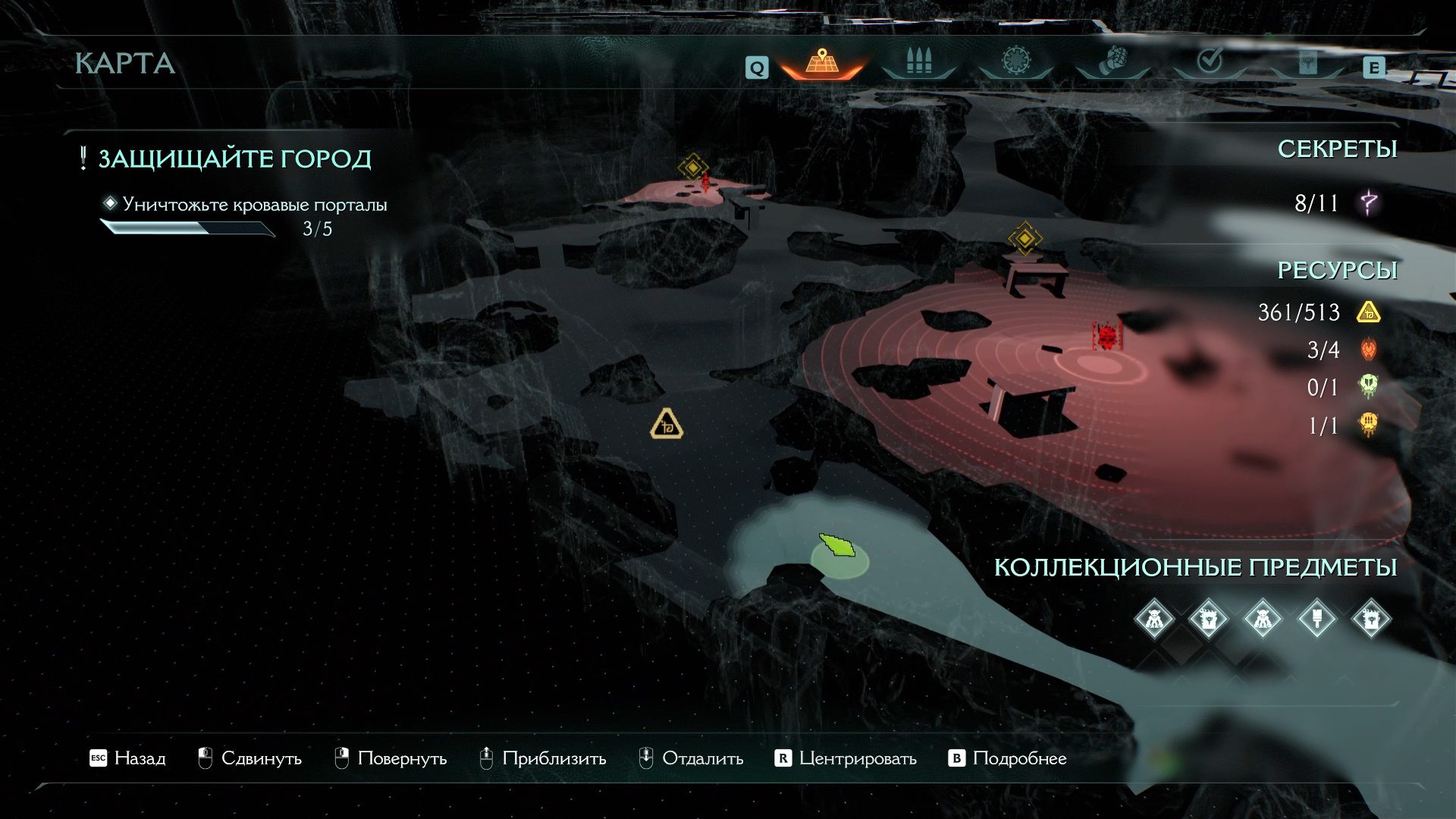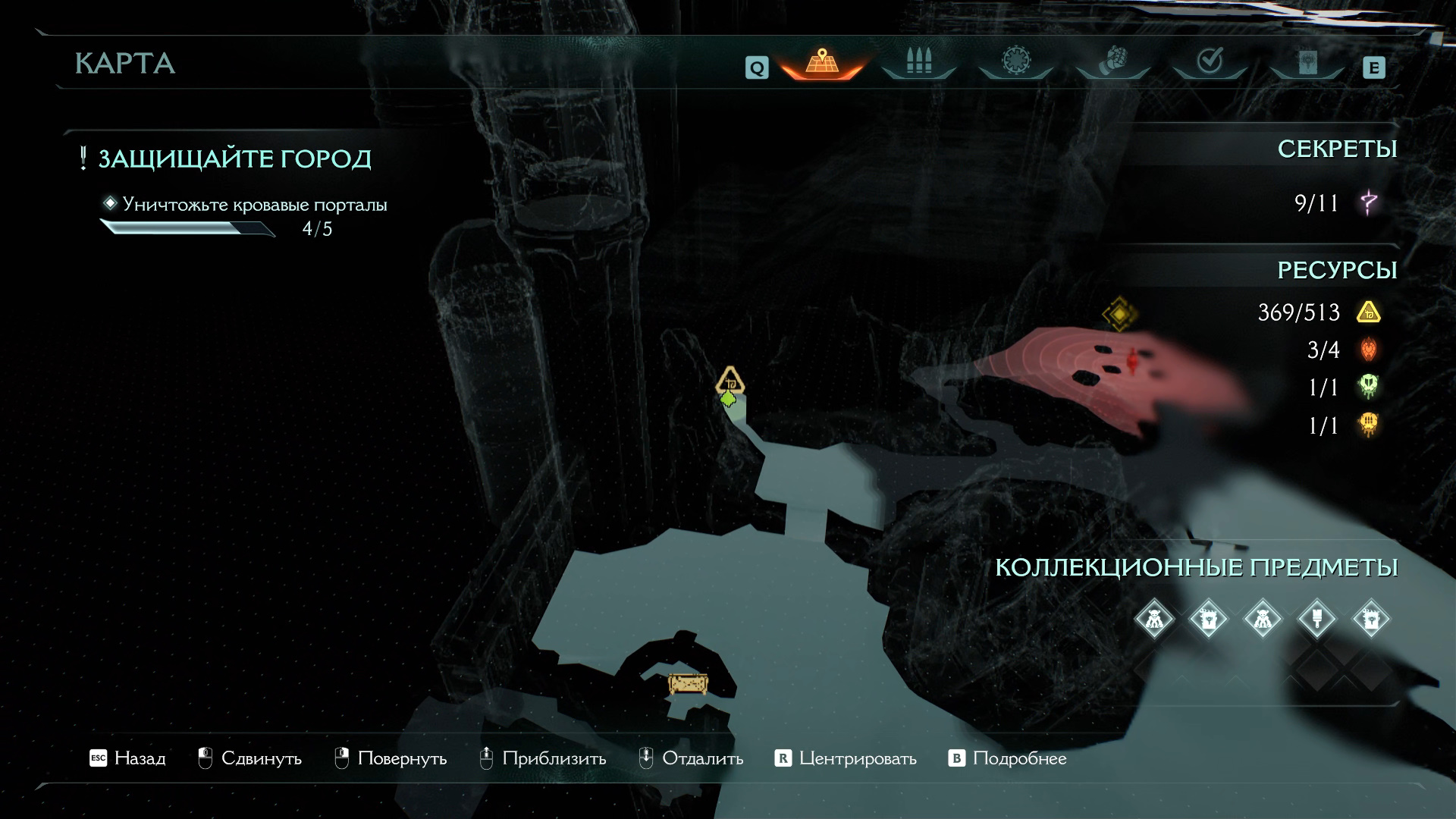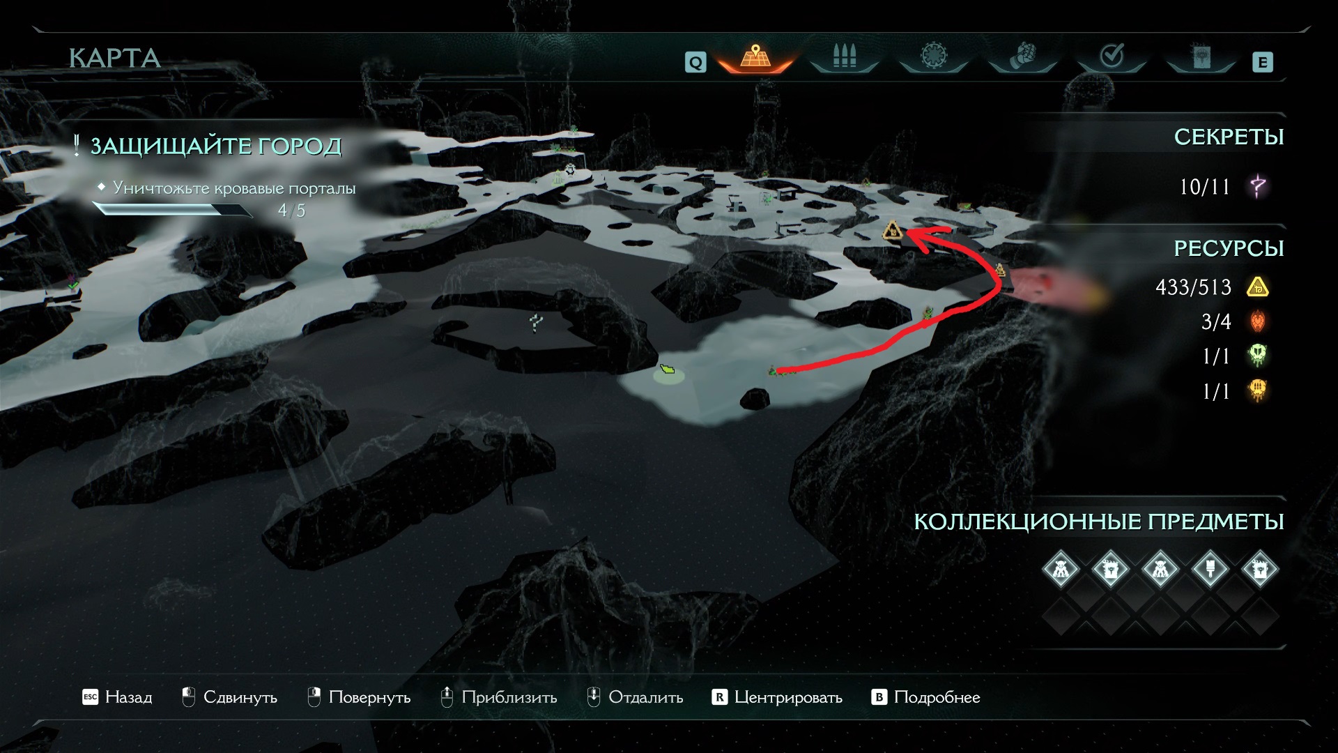 Двигайтесь в левый верхний угол карты от точки входа, в направлении следующего кровавого портала со скриншота выше.