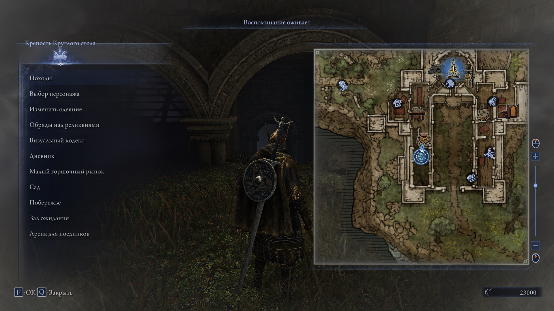 Вернувшись в Крепость Круглого Стола, поговорите с Железным слугой. Завершите воспоминание, взаимодействуя со светящейся нитью в углу комнаты.