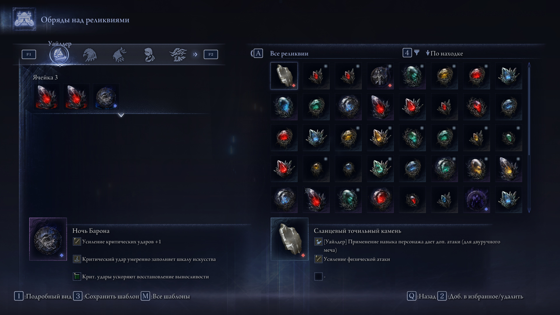- Награда: Чаша Уайлдера для реликвий (красный, желтый и серый слоты).