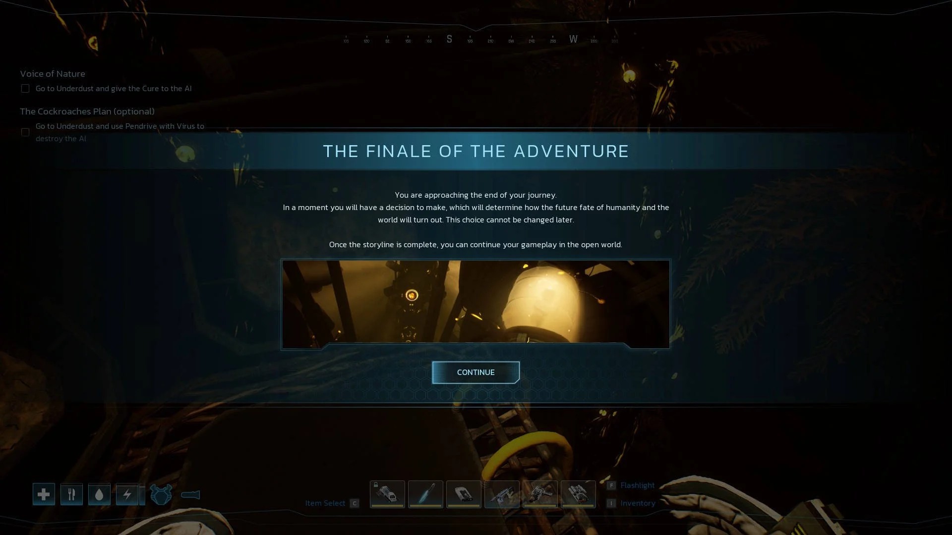 Хотя формально вы улетаете с планеты, игра продолжится около неработающего лифта у Древа ИИ, и вы сможете продолжить исследование планеты.