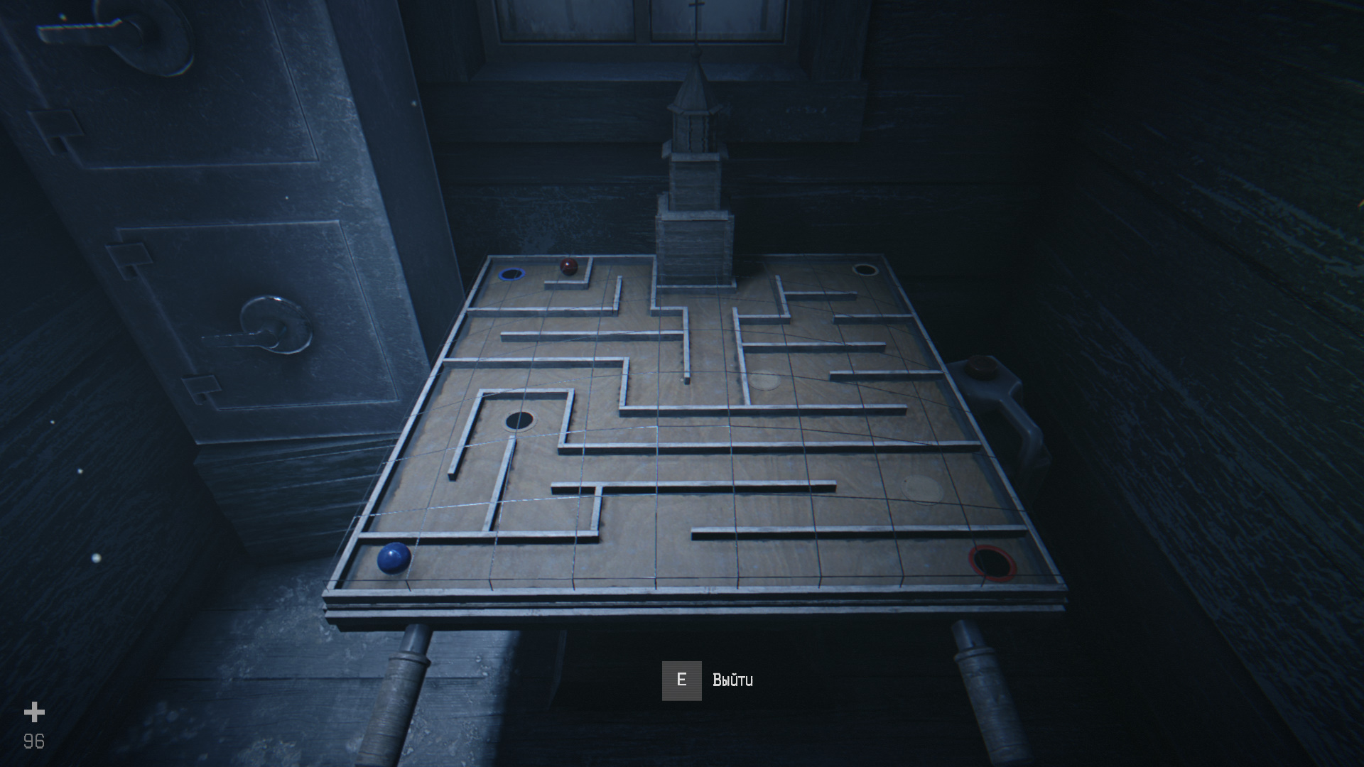 Вернитесь в церковь и откройте ключом дверь. Соберите химикаты, затем решите головоломку с шариками. Нужно отправить красный шарик в красное отверстие, а синий — в синее.