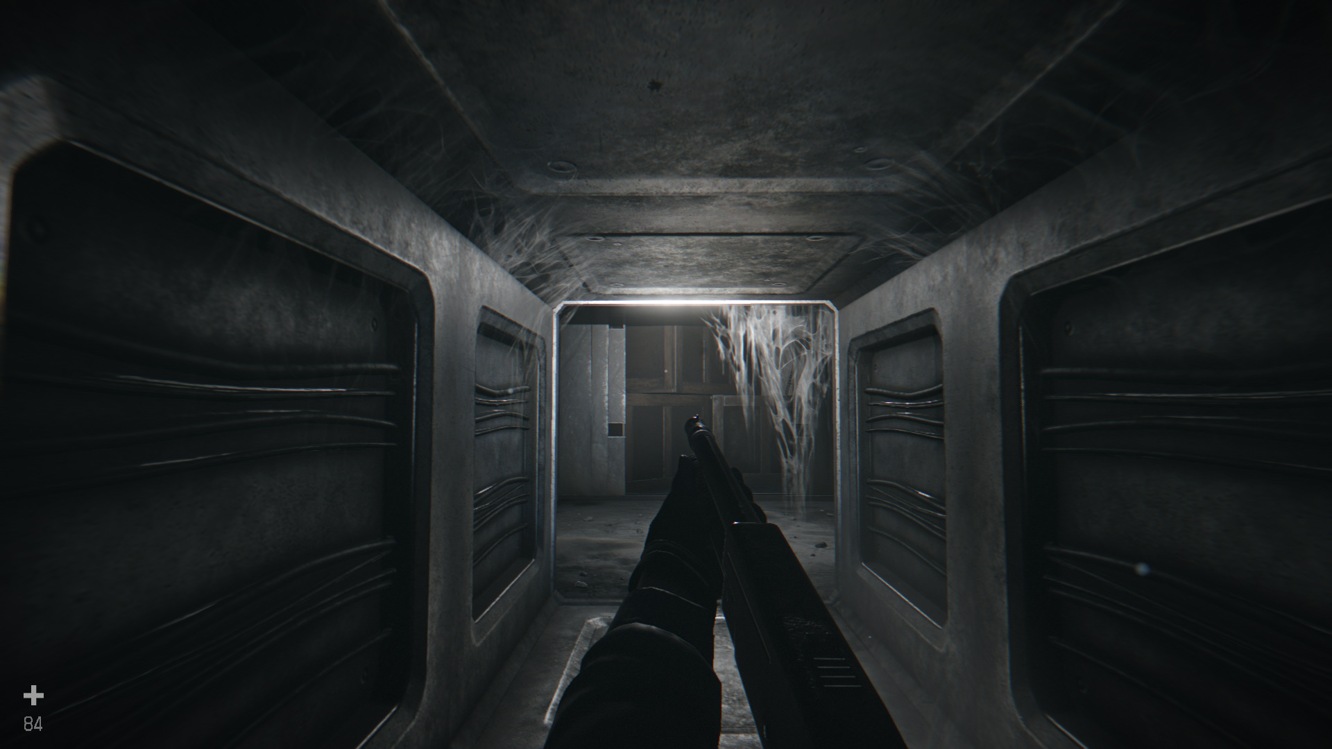 Поднимитесь по лестнице. Вы вернетесь к КПП с вахтером из воспоминания Игната. В первой комнате справа Юдина ищите верстак и множество припасов. В том же холле стоит терминал (8/11). Помимо его активации вы также можете сломать устройство, получив достижение «Синий экран». Для этого перейдите на вкладку с играми и запустите игру «Крест Ноль». Просто ждите.