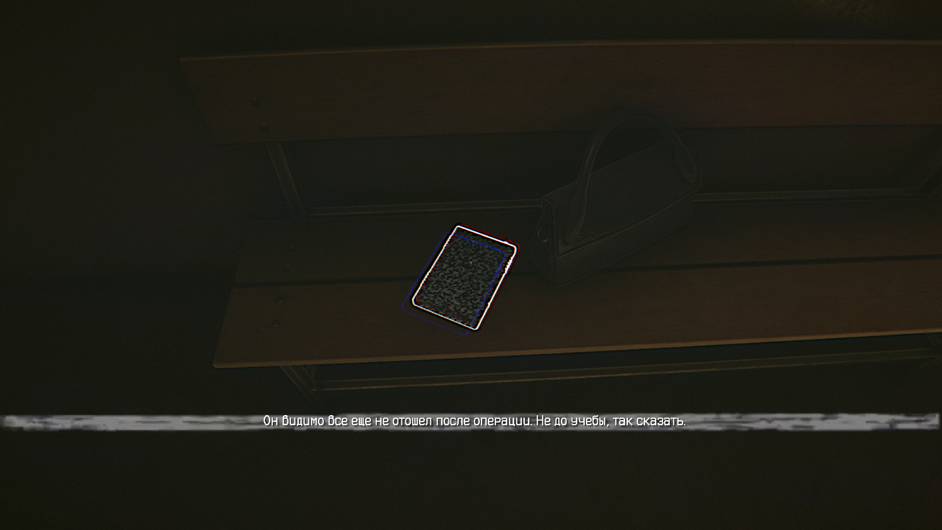 Воспользуйтесь терминалом (9/11) в холле напротив лестницы. Спуститесь во двор, идите вперед мимо школьного автобуса. Водитель окликнет Игната и попросит принести монтировку из гаража. Пройдите вправо от автобуса и найдите в гараже монтировку (на дальнем столе). Вернитесь к автобусу и загляните внутрь, чтобы началась кат-сцена.