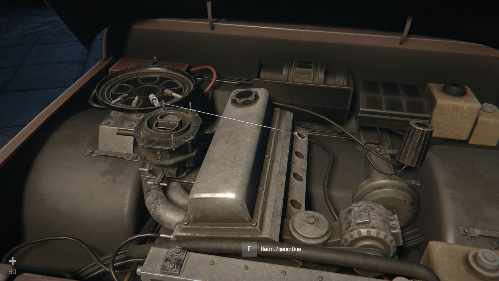 Подойдите к открытому капоту и взаимодействуйте с двигателем. Карбюратор установите в отверстие слева от двигателя. Используя мышь, удерживайте белую точку в центральном круге. Четыре свечи вставьте в отверстия справа от двигателя. Пройдите к заднему колесу и взаимодействуйте с ним. Двигайте мышь по кругу, чтобы закрутить 5 болтов, после чего спустите автомобиль с домкрата (находится у того же колеса, едва заметен). Закройте капот, садитесь в машину и трижды нажмите на красную кнопку. Вы получите достижение «Мастер».