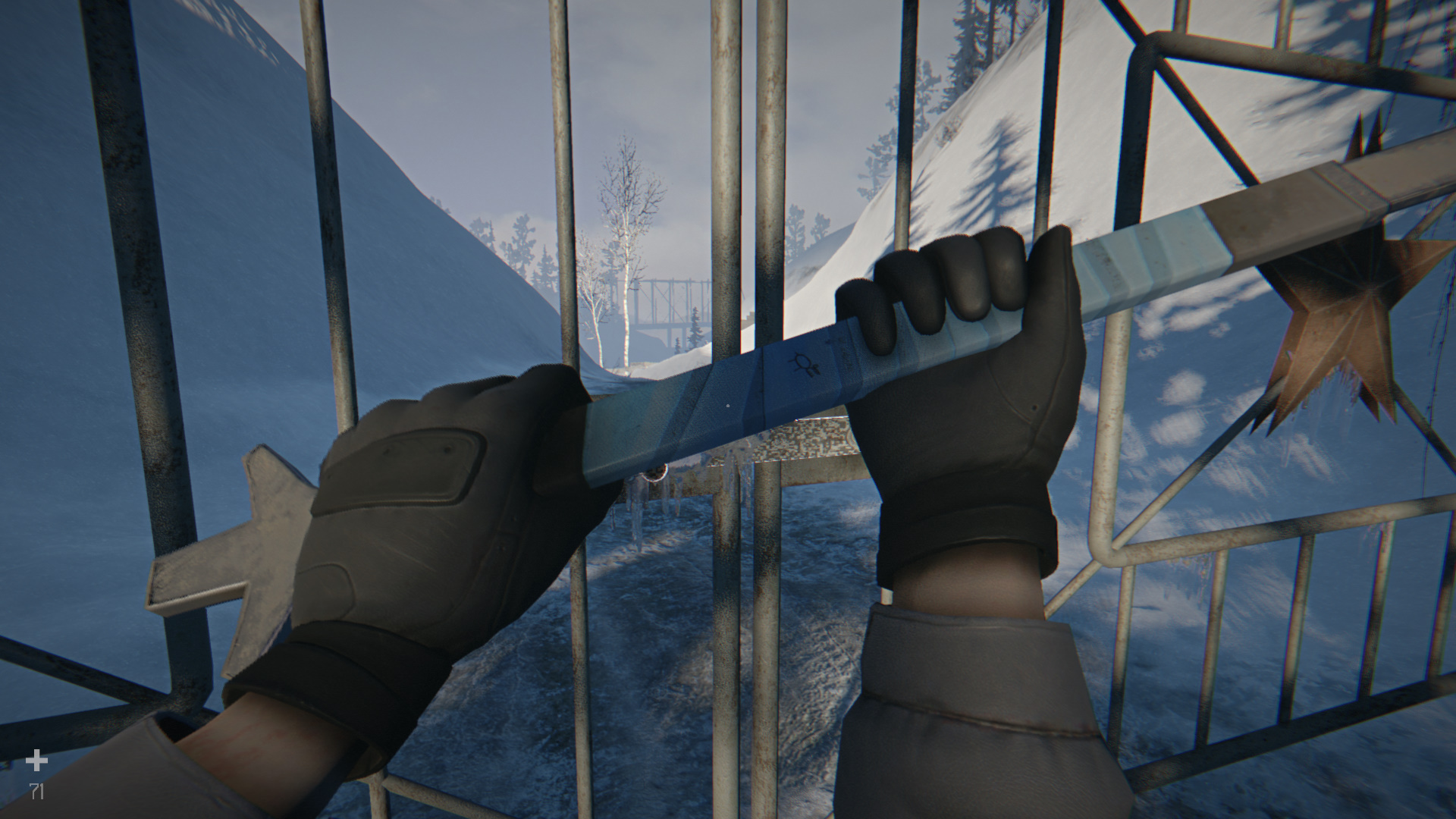 В ящике слева в той же башне ищите химикаты. Не забудьте забрать со стола детали для машины! Идите обратно по дороге к воротам, ведущим к гаражу. Также можете спуститься с башни и свернуть в туннель справа, чтобы найти машину и будку с батареей. Около ворот достаньте слесарный ключ и ударьте по замку, чтобы разбить лед.