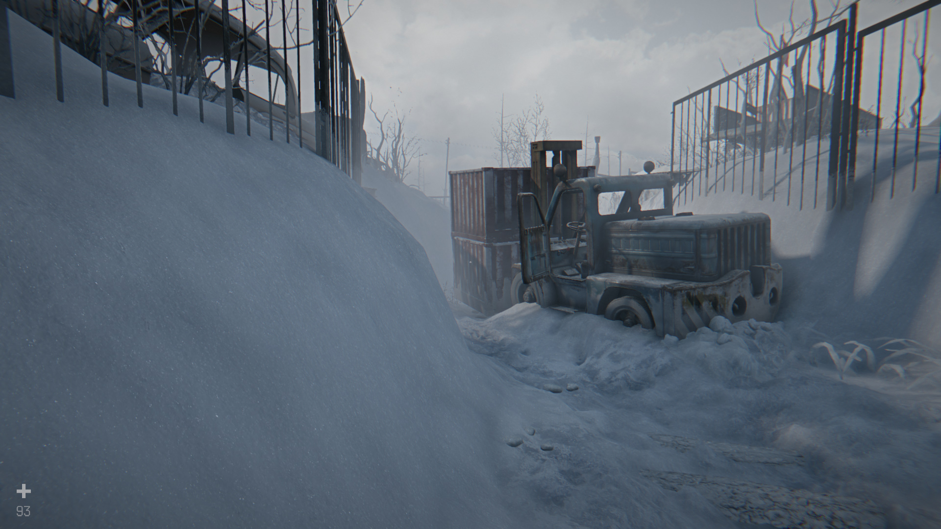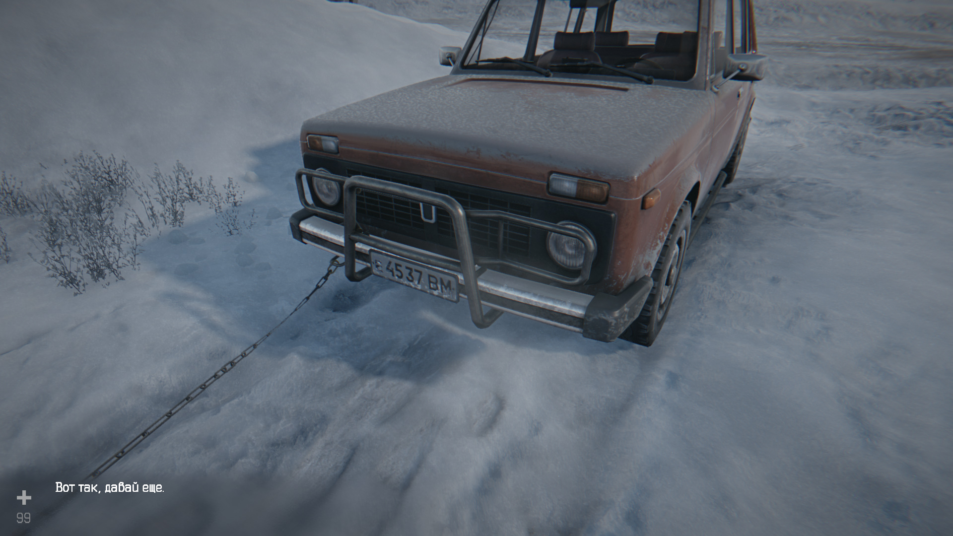 Двигайтесь дальше по дороге, пока не доберетесь до ретранслятора. По пути будет густой снег, так что переключитесь на пониженную передачу (L).