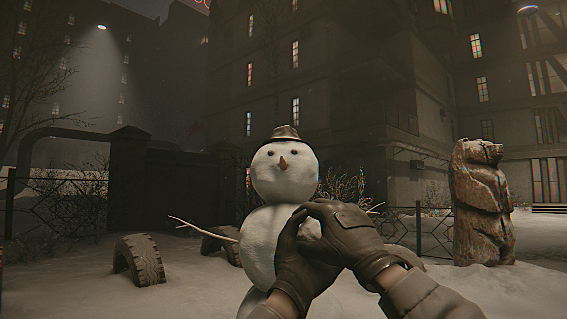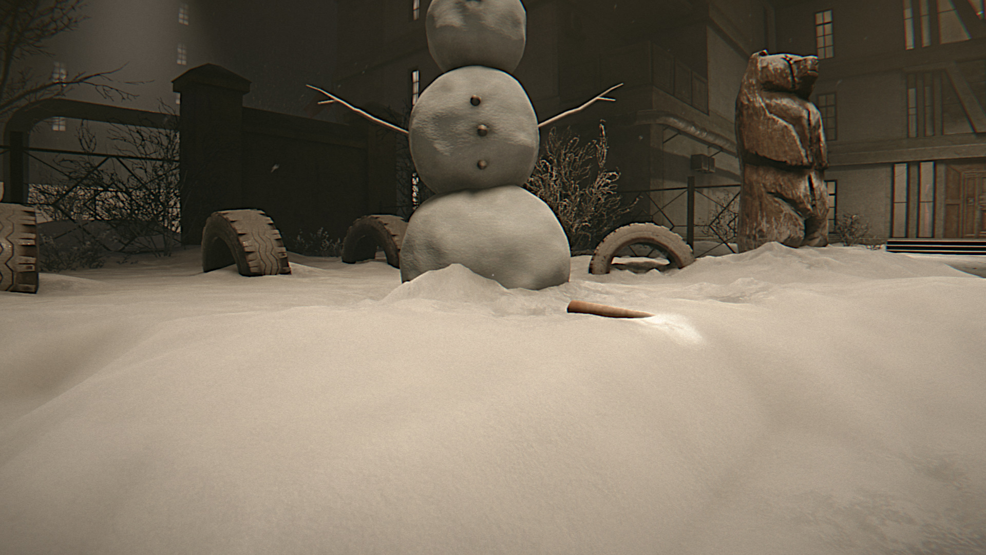 Прежде чем идти домой, осмотрите игру в крестики-нолики, качели и горку. Постойте рядом с каждым объектом около минуты, и получите достижение «Детство». Чтобы получить ачивку «Длинный нос», слепите из снега комок и бросьте в морковку на голове снеговика.