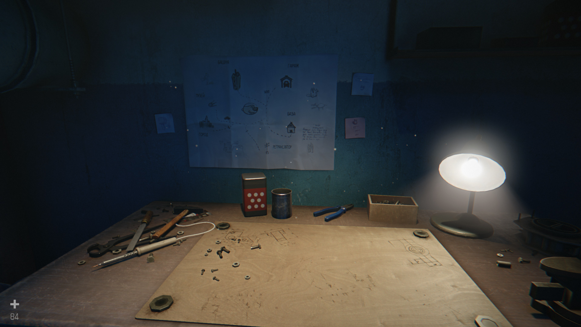 Вставьте этот предмет в квадратное отверстие у закрытой двери и войдите в комнату. Запустите видеопроектор (2/5). Осмотритесь, можете включить подсветку. Если не нашли зажигалку ранее, заберите ее отсюда, с печи. На столе также лежит записка от Николы. За просмотр пленки с кинопроектора из убежища Николы вы получите достижение «Совершенно секретно».