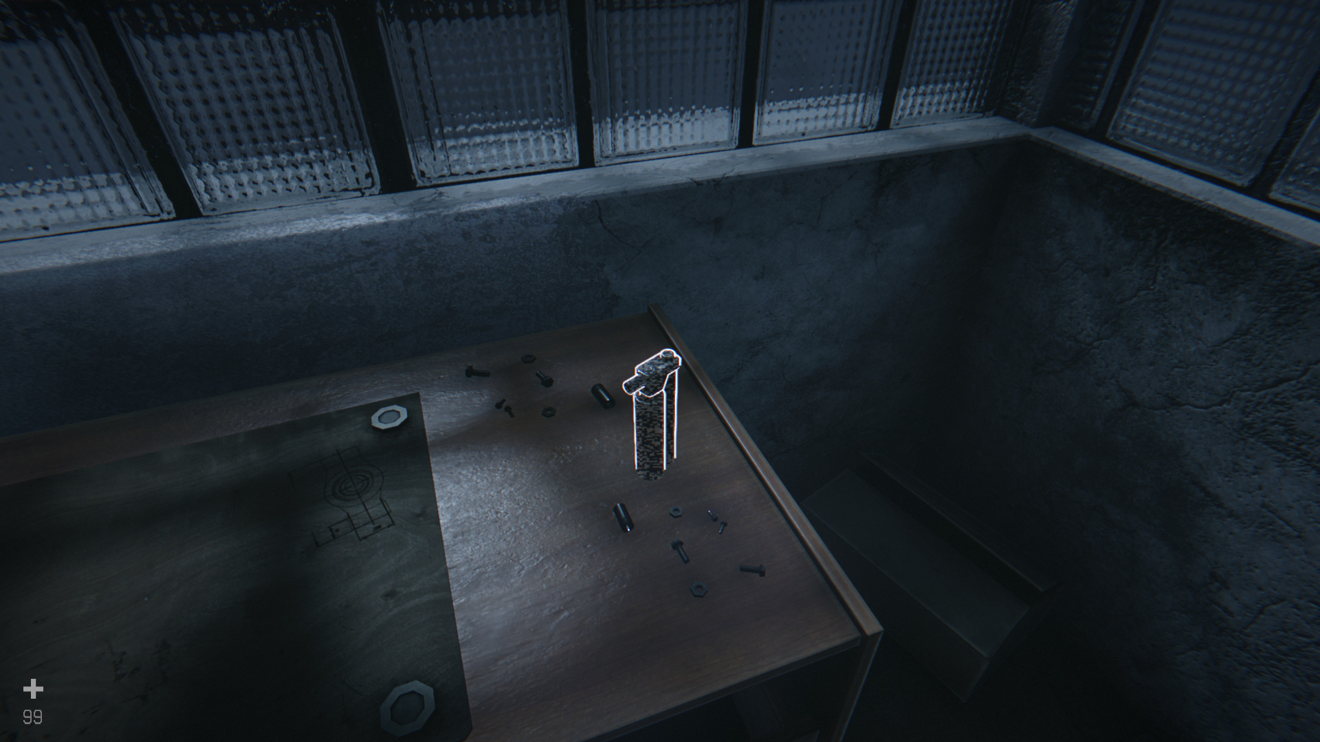 Крутите колесико мыши, пока не появится магнитный ключ. Заберите со стола дешифратор и щелкните по магнитному ключу. Чтобы установить гаджет, нужно своевременно жать клавишу E, когда передвигающийся квадрат совпадает с неподвижным. По желанию можете скрафтить медицинский инъектор (2 детали и 1 химикат). Также в спальне на столе лежит новая электронная книга (6/30).