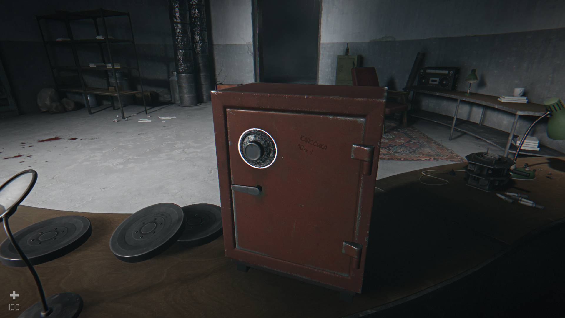 Не торопитесь. Осмотрите красный сейф на столе. Подсказка на дверце гласит: «Классика 90-х…». В сообщениях с электронной книги Николы есть год — 1991. Введите код 1991 и достаньте из сейфа металлический брусок.