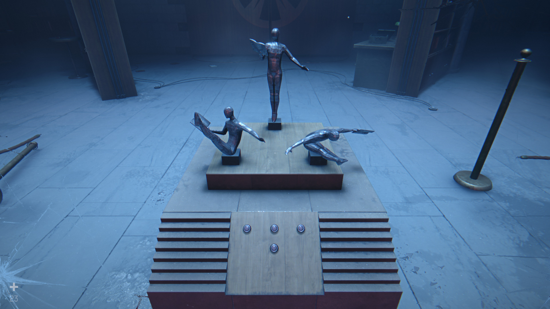 Идите дальше, в зал с эскалатором и серебряной машиной (статуя). По эскалатору не подняться, но справа от него есть открытая комната. Ищите внутри аудиокассету 06/07, электронную книгу (16/30). В планшете сказано, что ключ от эскалатора упал в фонтан. Чтобы его достать, нужно перекрыть трубы у насоса. Откройте настенный красный щиток и включите питание. Поворачивайте тумблер и щелкайте ЛКМ, когда лампочки будут мигать.