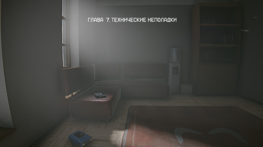 В начале главы подберите со стола электронную книгу (14/30). Выйдите в холл и осмотрите терминал (4/11). В кабинете напротив есть еще одна электронная книга (15/30). Путь вперед преграждает вахтер. Вернитесь в первую комнату и возьмите пульт с дивана. Вы будете управлять машинкой.