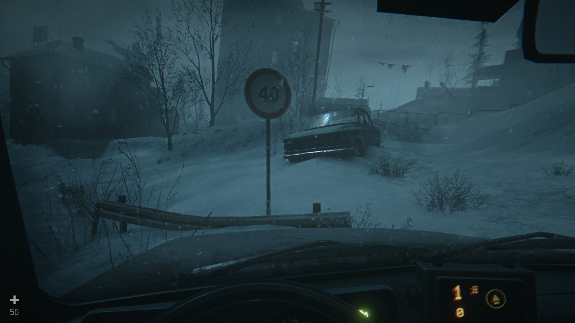 Езжайте вниз по дороге, остановитесь около знака с ограничением скорости (40 км/ч) и пройдите по дорожке вправо, к заброшенному дому. Внутри есть детали и химикаты.