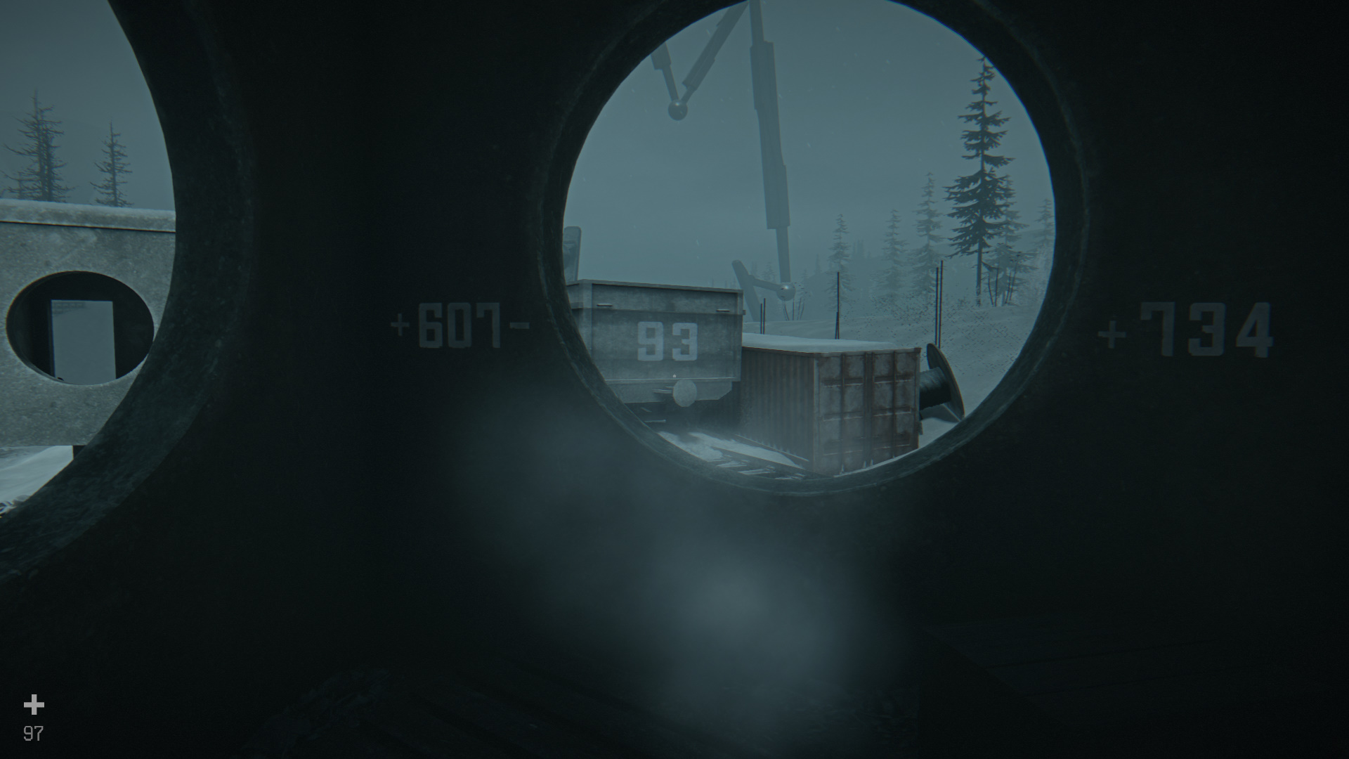 Войдите во второе здание и увидите в окне вторую часть равенства: +607-93+734. Теперь сопоставьте все это и решите: 9+468-73+607-93+734. Получится код 1652. Введите и достаньте из сейфа патроны для дробовика и продукты питания.