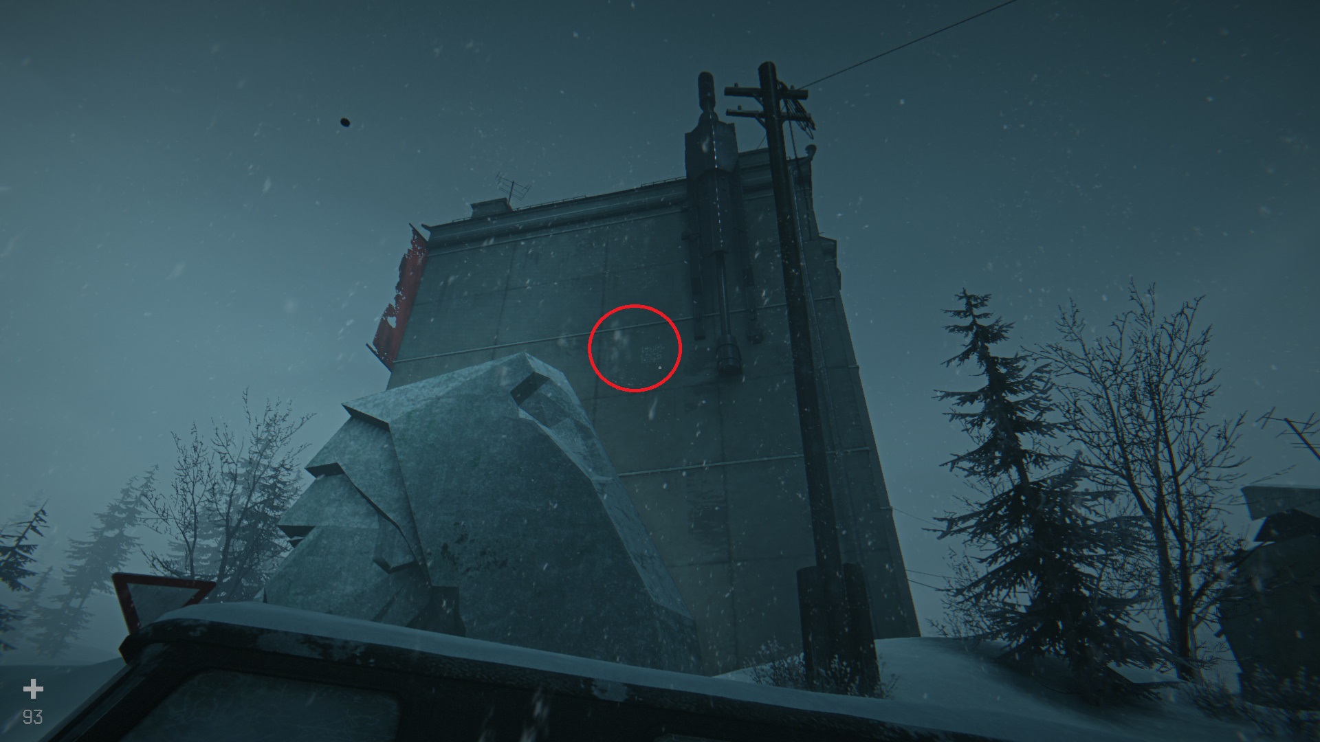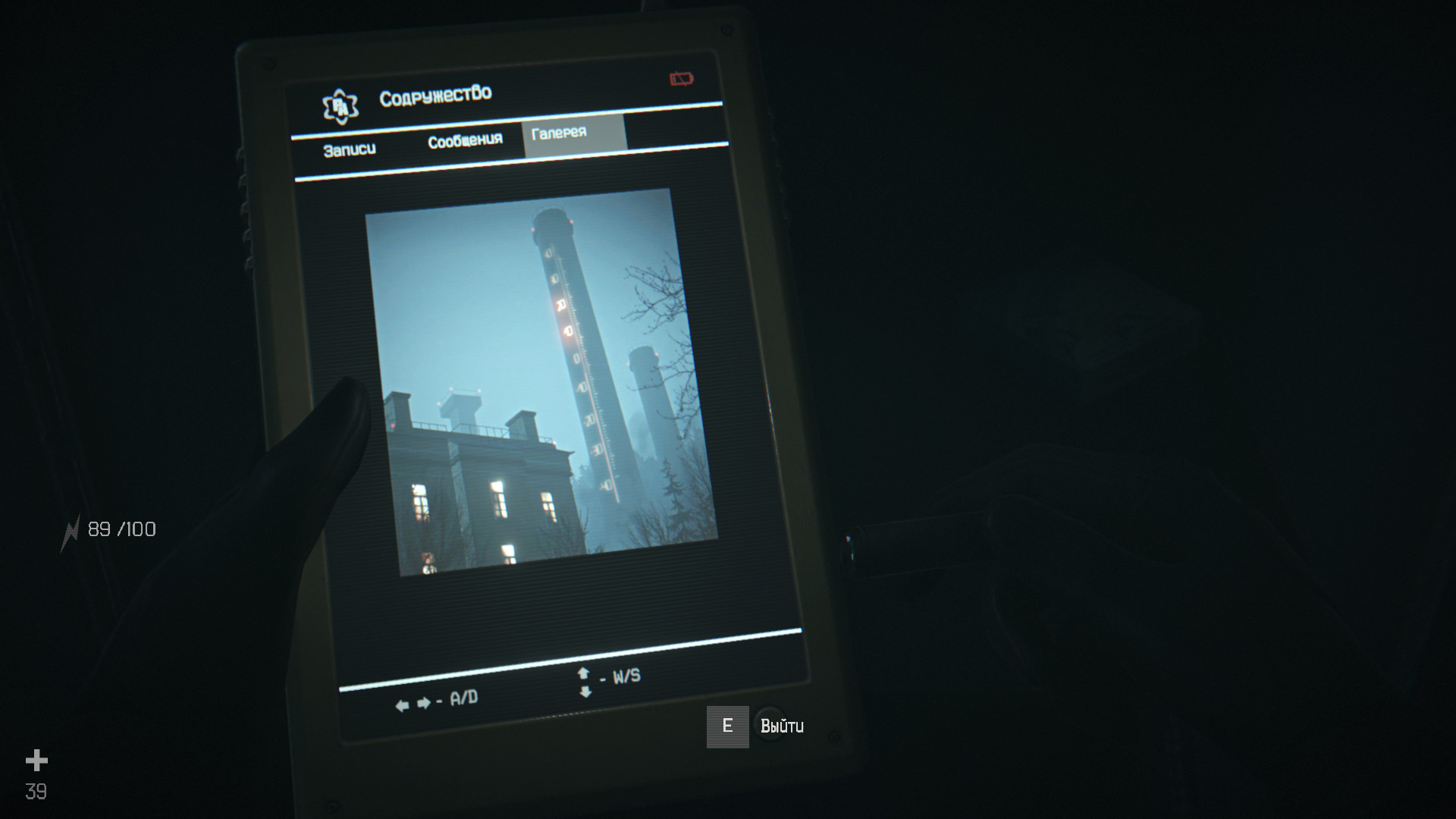 Продолжите движение и остановитесь на площади с большой статуей. Уничтожьте двух комаров. Войдите в здание с изображением статуи. В помещении справа есть продукты, патроны для дробовика и сейф. Путь влево ведет в комнату с верстаком. Там же есть электронная книга (19/30). В галерее этой книги есть фотография башни с выделенными цифрами 20 и 10.