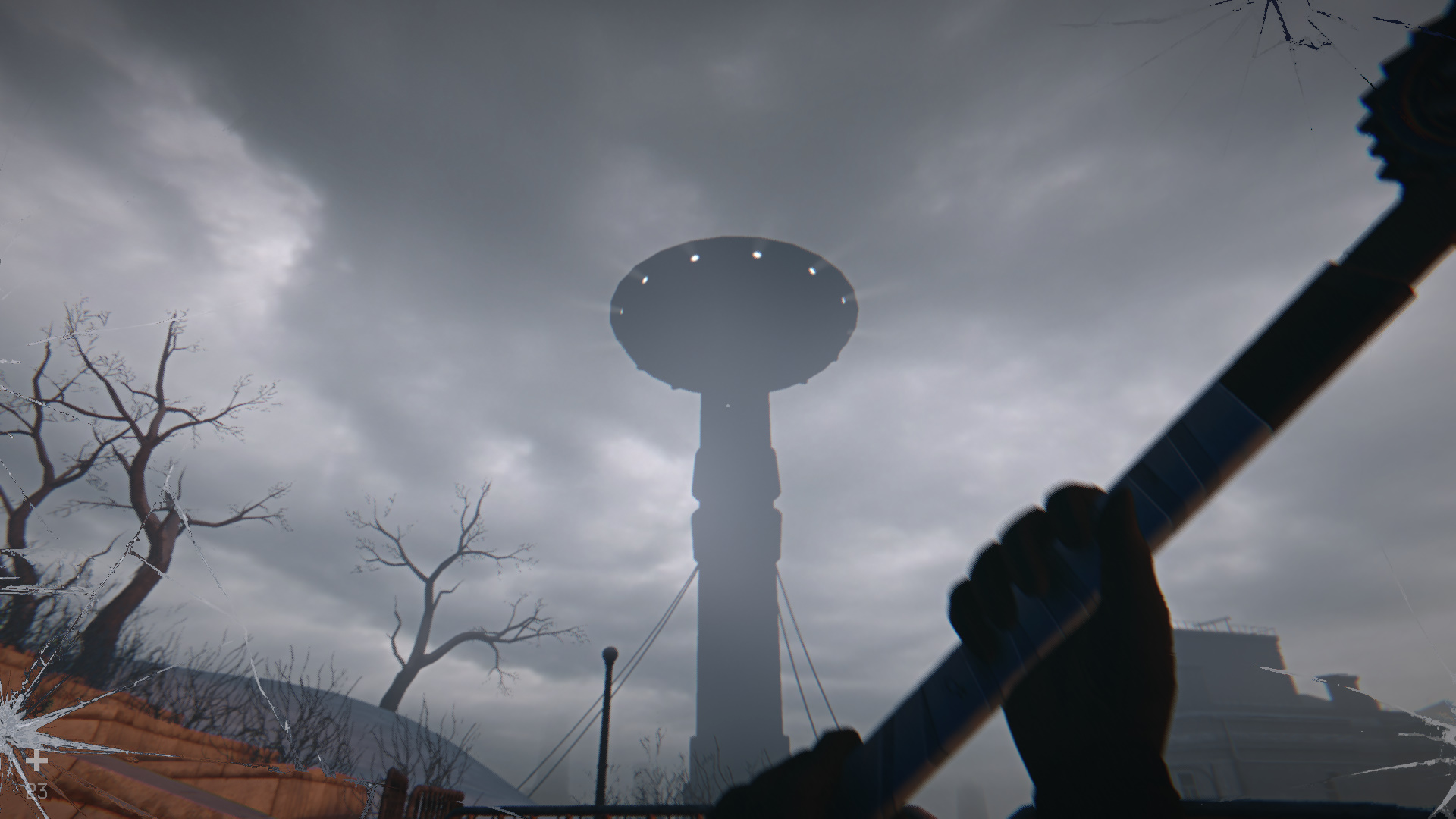 Снаружи появятся дроны-комары. Это их первая и самая опасная разновидность: такие красные дроны сбрасывают взрывчатку прямо на голову главному герою и наносят существенный урон. Заманите их ближе и спрячьтесь в укрытии. Подберите момент и атакуйте из-за двери, оставаясь под крышей в безопасности. Как только пропадут звуки жужжания, доставайте детектор и тем же методом вернитесь через минное поле. Прикрепите цепь к воротам и машине, после чего сломайте ворота, сдав назад.
