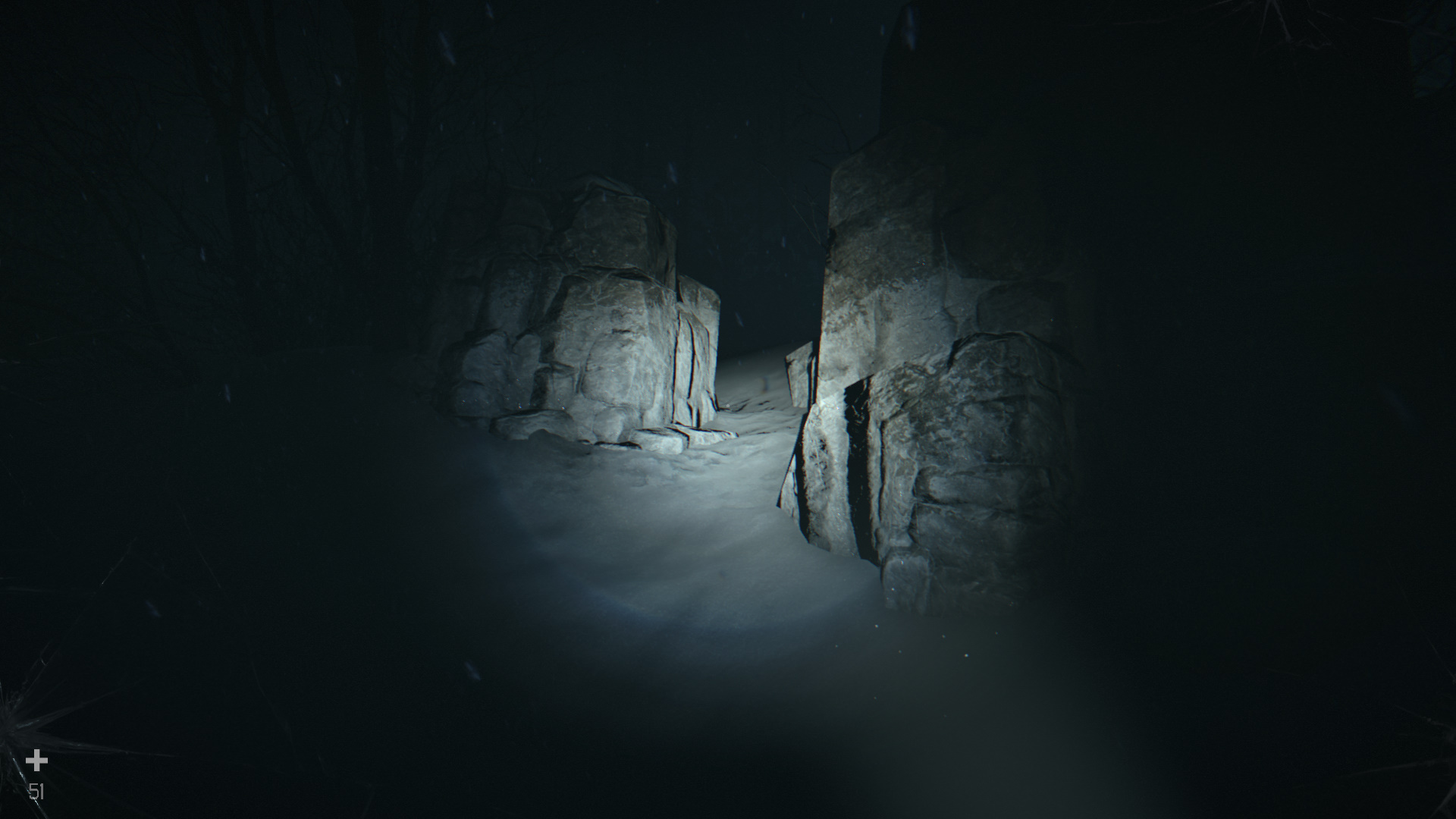 Сейчас будет достаточно сложный отрезок. Вам нужно двигаться через заснеженный лес, избегая встречи с Охотником. Есть множество открытых капсул и защитных сфер, внутри которых вы можете прятаться. Также скрываться можно в высокой траве, пригнувшись на CTRL.