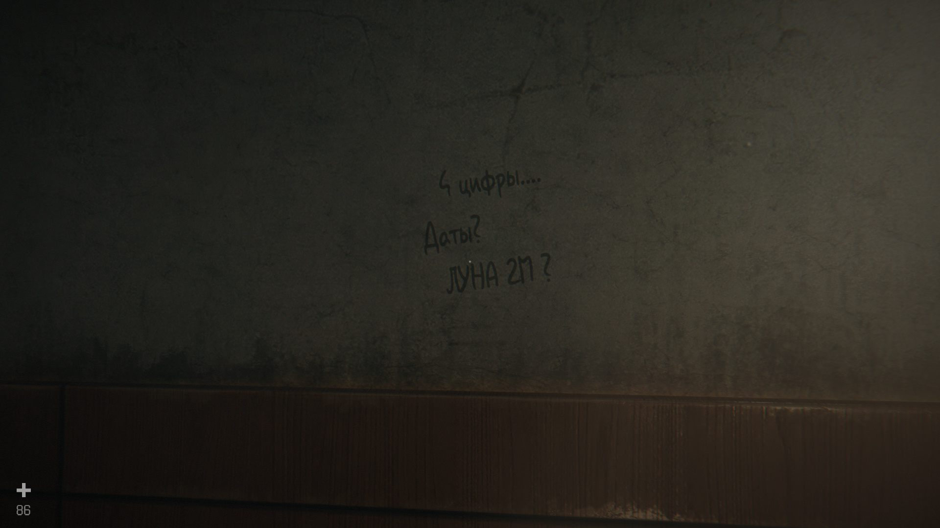 Вернитесь в комнату с сейфом. На стене есть подсказки: «4 цифры… Даты? Луна 2М?».