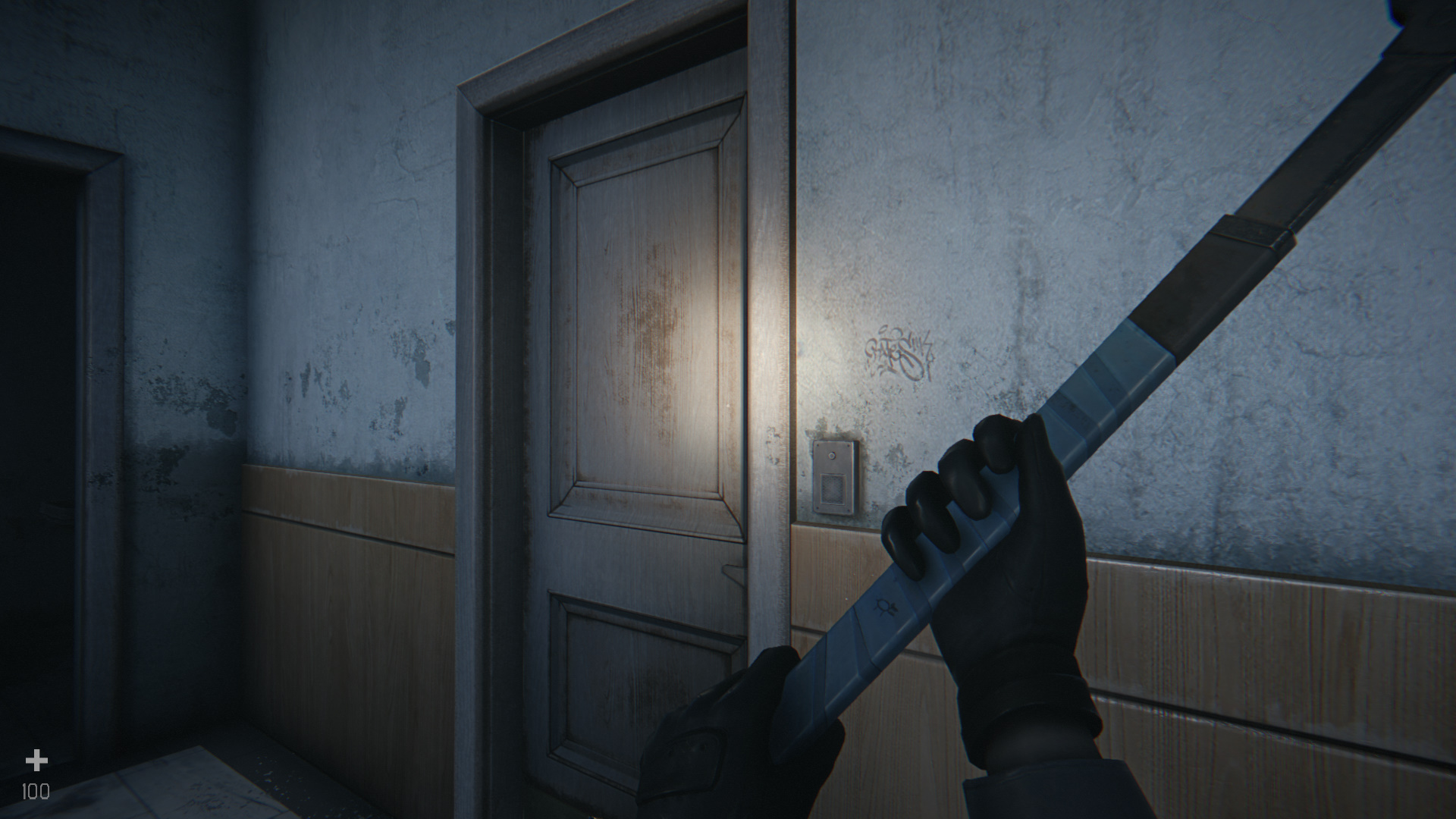 Следуйте дальше, в дальнюю комнату, возьмите в руки слесарный ключ (клавиша «2») и взаимодействуйте с люком, нажав на клавишу E. Передвиньте ключ несколько раз справа налево, чтобы открыть люк и спуститься вниз.