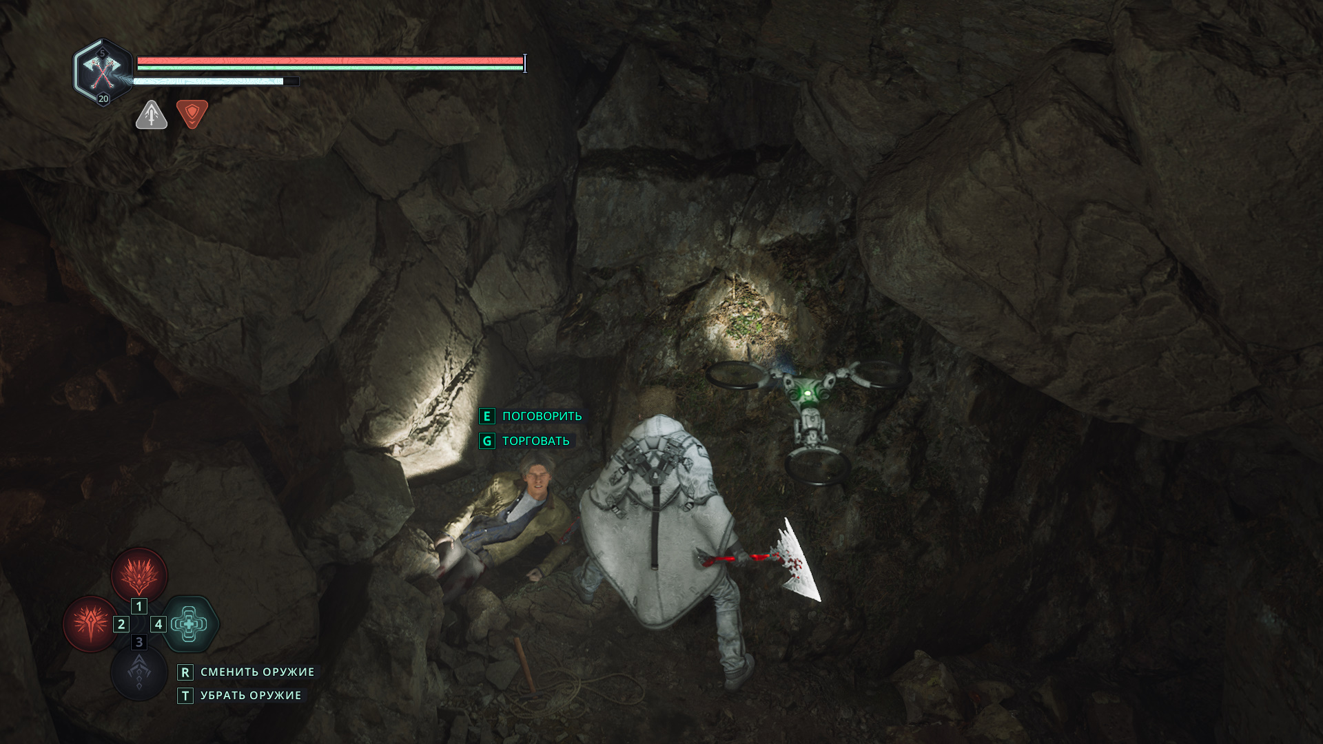 Выйдите через дверь и спуститесь по лестнице справа. Впереди можно найти модуль дрона «Ударная волна». Не доходя до него, слева, есть еще одна лестница, ведущая ниже. Идите по левой тропе и обнаружите попавшего в завал Иштиана Блэйни.