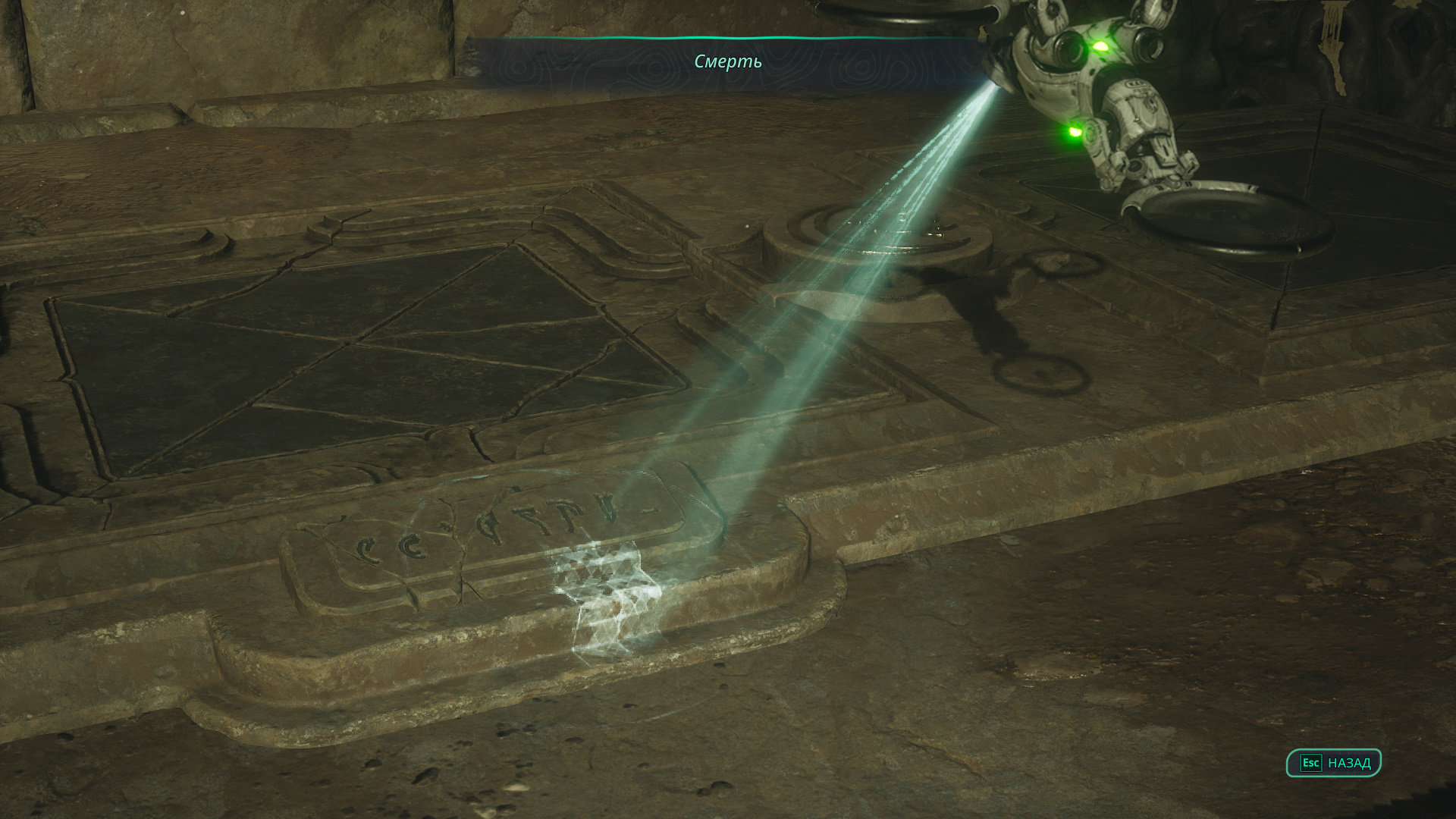 Помимо того, что вам нужно было отыскать все символы, важно понять их расположение. Вернитесь к двери и введите следующий код (смотрите на нижнюю колонку символов, где есть стрелочки) сверху вниз: