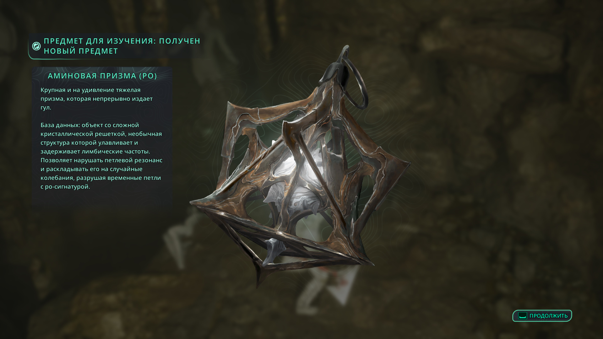 Это лимбический жезл (Счастье, «Х»). А еще вы уничтожите Стража временной петли (двух врагов, которые охраняли жезл). Вернитесь назад и буквально на той же стороне будет дыра в стене. следуйте через нее, убейте врага и подберите аминовую призму Ро.