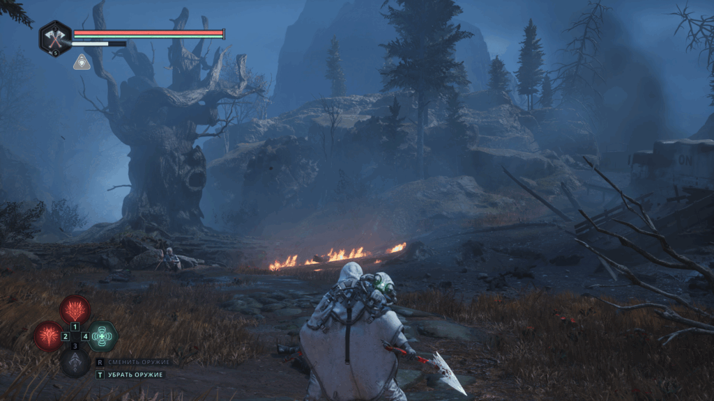 Справа от нее есть тропинка, уходящая в горы. Идите по ней, убивая врагов, поднимитесь по длинной лестнице и попадете в лагерь выживших перед входом в другую шахту.
