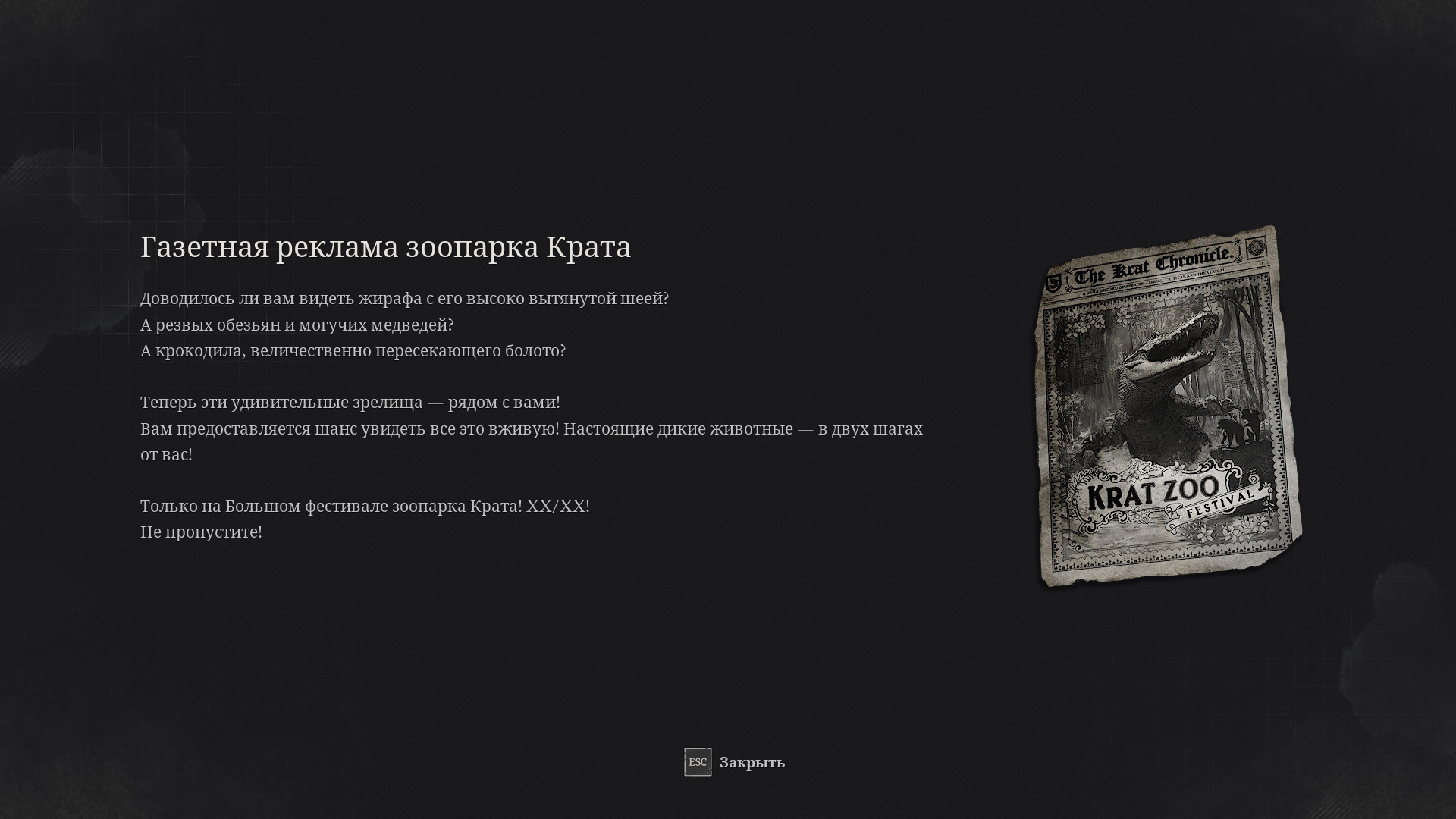 Пройдите чуть дальше и у кареты слева найдите газетную рекламу зоопарка Крата. Отремонтируйте звездочет «Странный лес». Вы узнаете, что для переключения между временными периодами при взаимодействии с любым звездочетом нужно нажать на клавишу F.